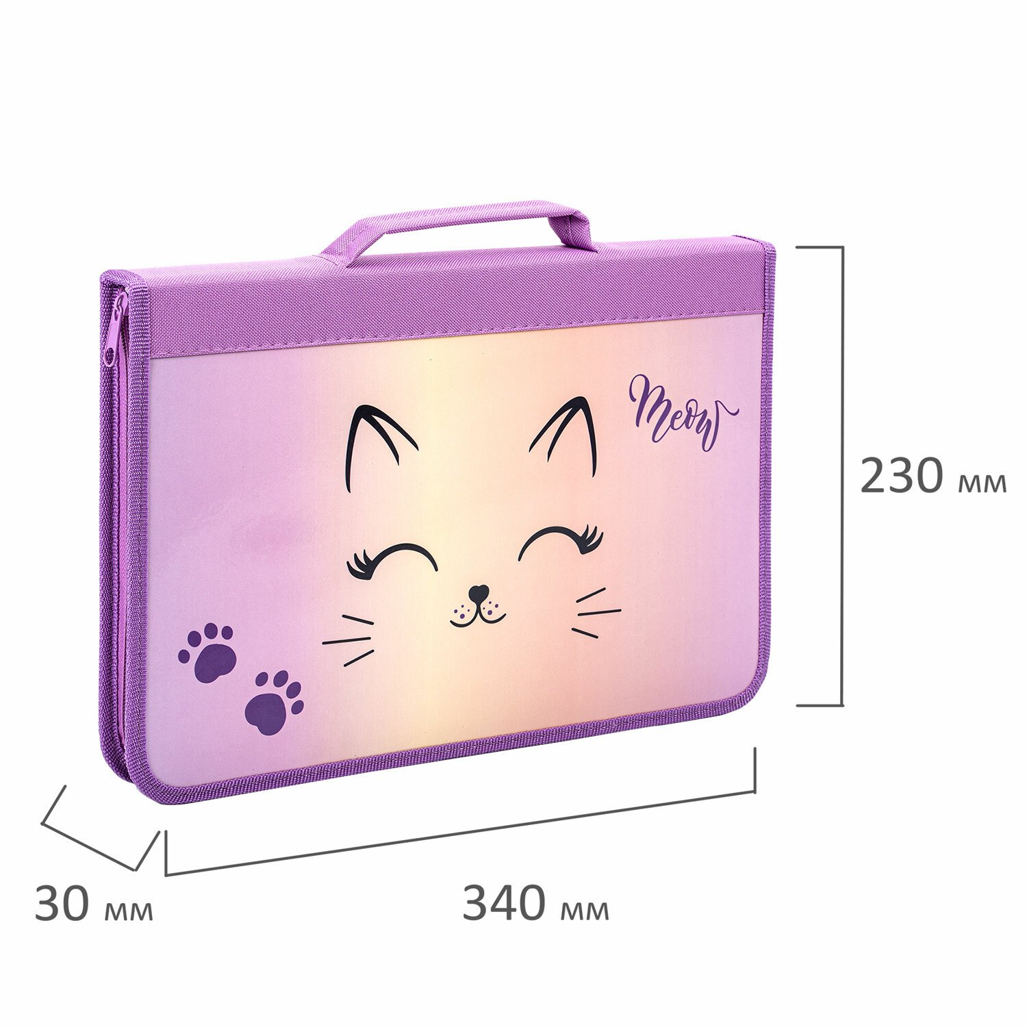 Папка на молнии BRAUBERG А4 с ручкой, с органайзером, 1 отделение, Paw prints, 273383