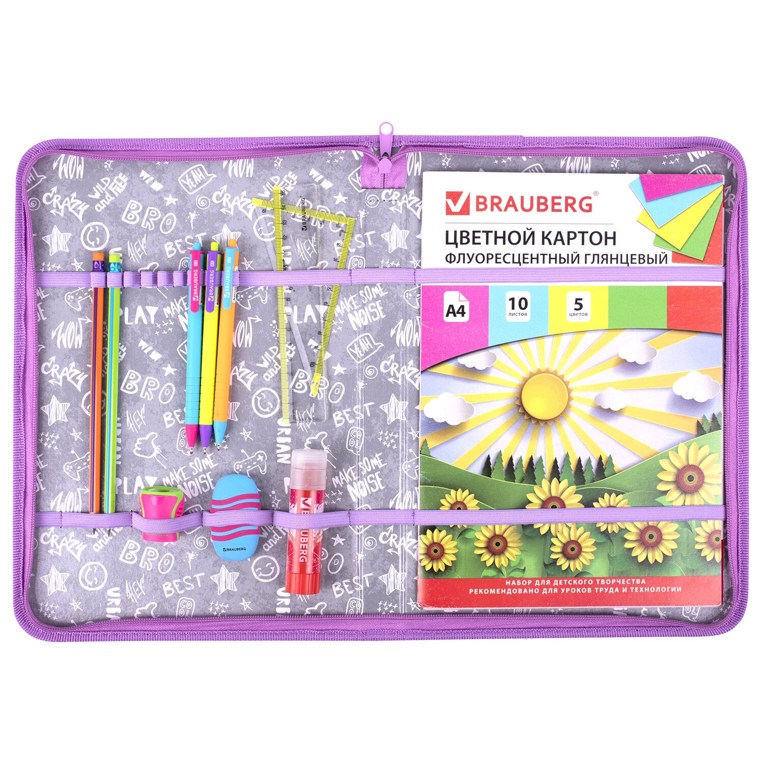 Папка на молнии BRAUBERG А4 с ручкой, с органайзером, 1 отделение, "Cheerful", 271448