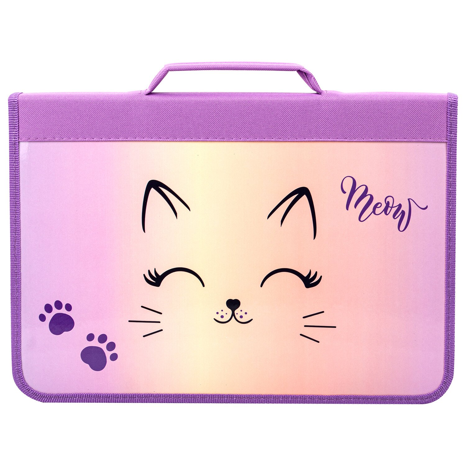 Задняя стенка папки выполнена из полиэстера, корпус - из плотного картона, по краям имеет тканевую окантовку. Внутри папки есть органайзер, который позволяет держать канцелярские и письменные принадлежности в порядке. Тканевая ручка с пластиковой вставкой внутри позволяет переносить папку в руке и размещать ее на крючке под партой. Застегивается на молнию по периметру. Формат А4. Яркая и четкая печать дизайна.