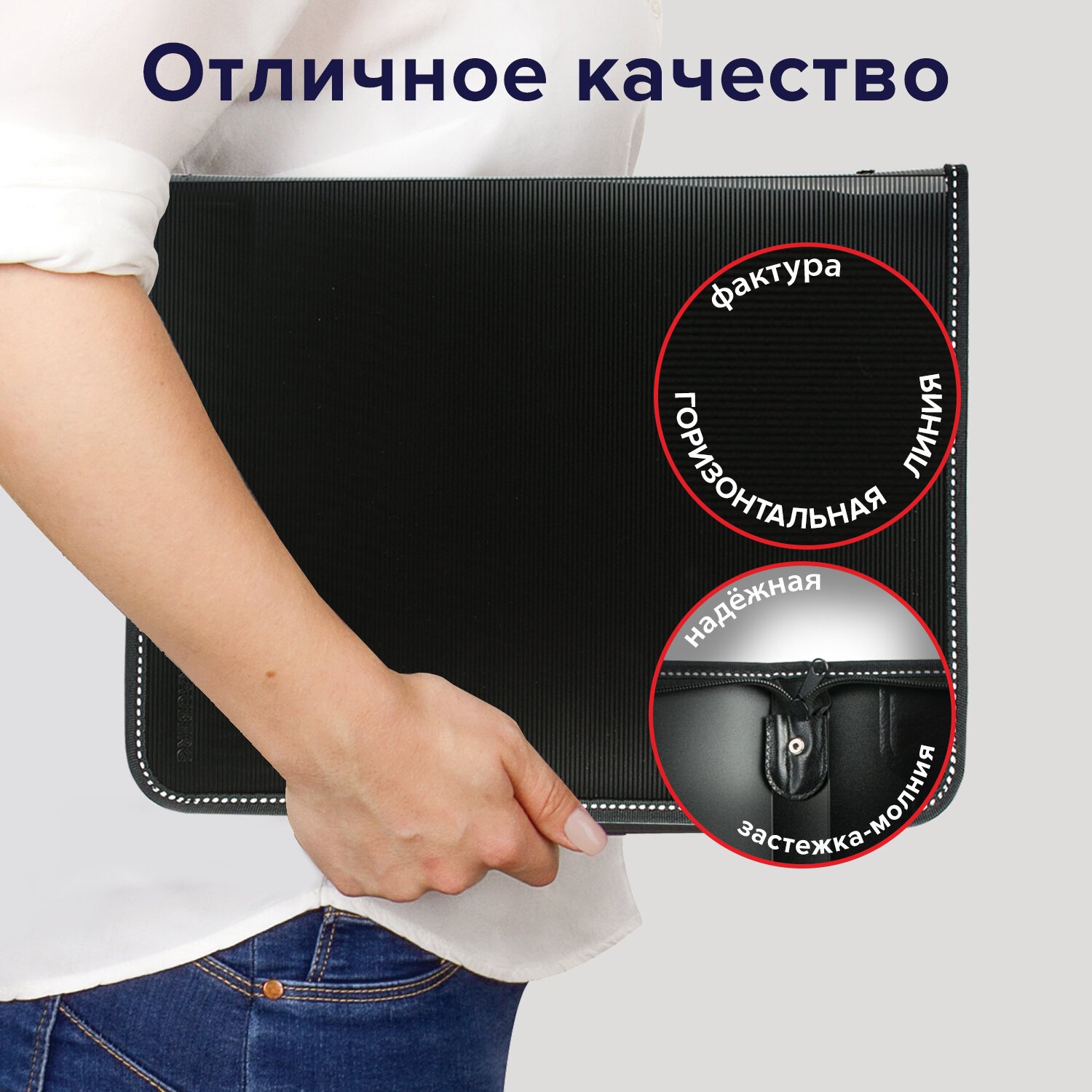 Папка на молнии пластиковая BRAUBERG "Contract", А4, 335х242 мм, внутренний карман, черная, 225162