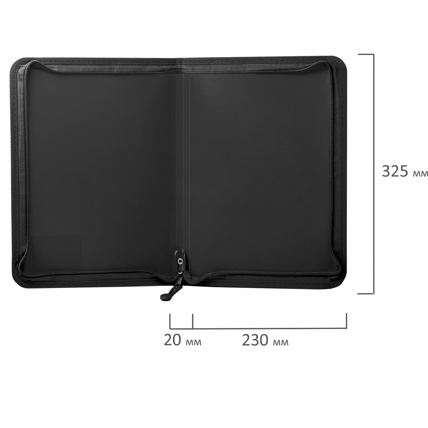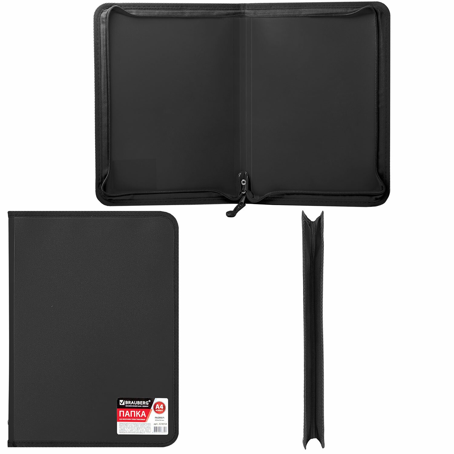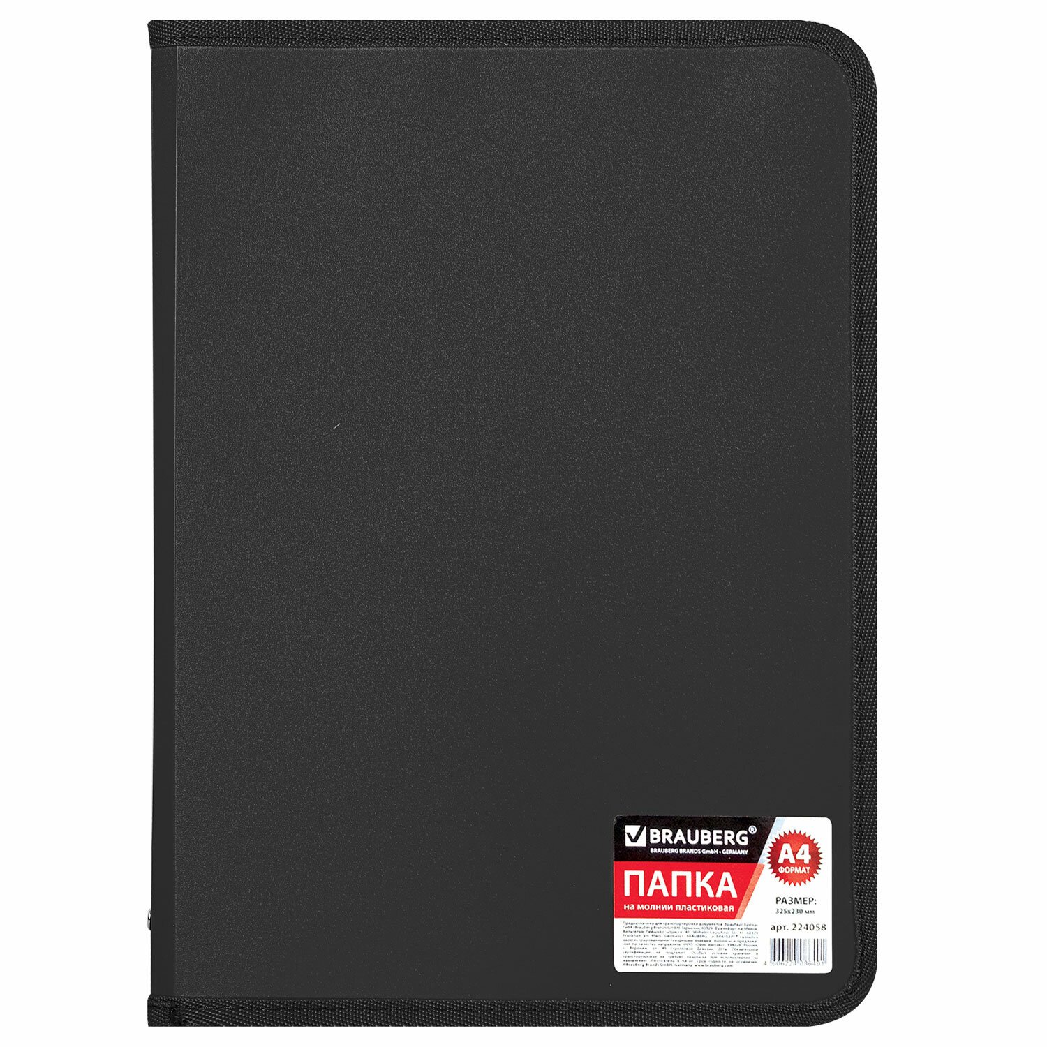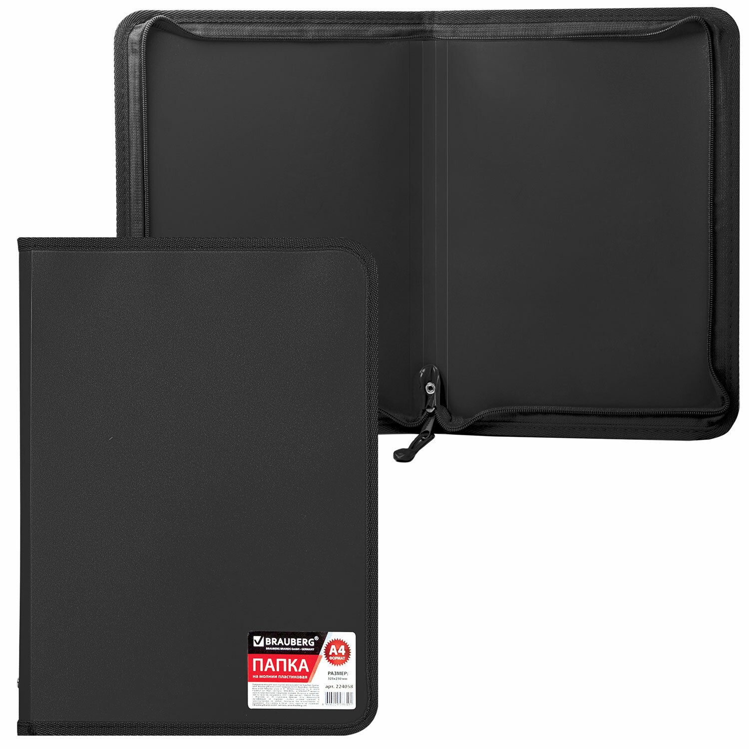 Папка на молнии пластиковая BRAUBERG "Стандарт", стандартная фактура, А4, 325х230 мм, матовая, черная, 224058