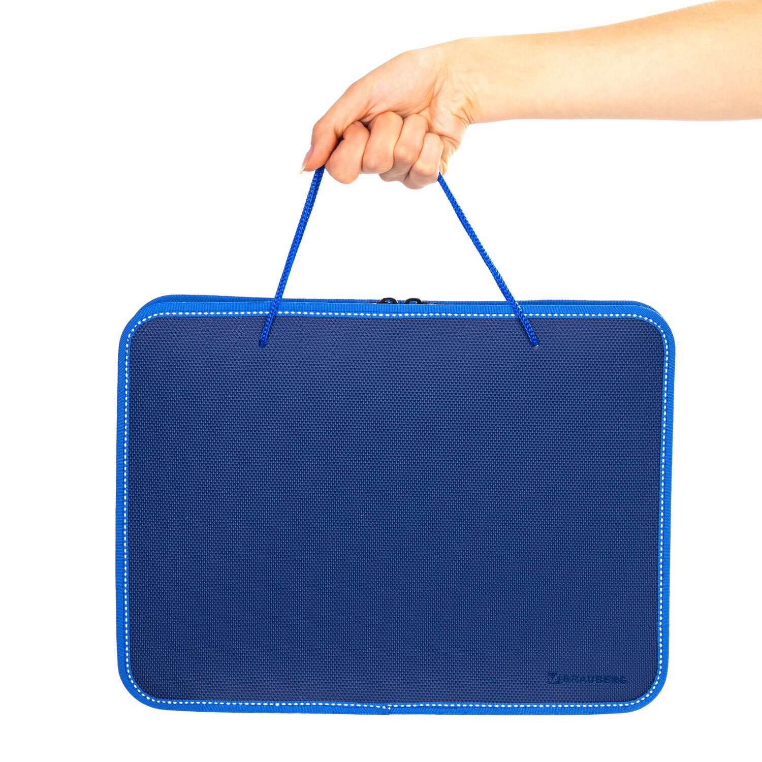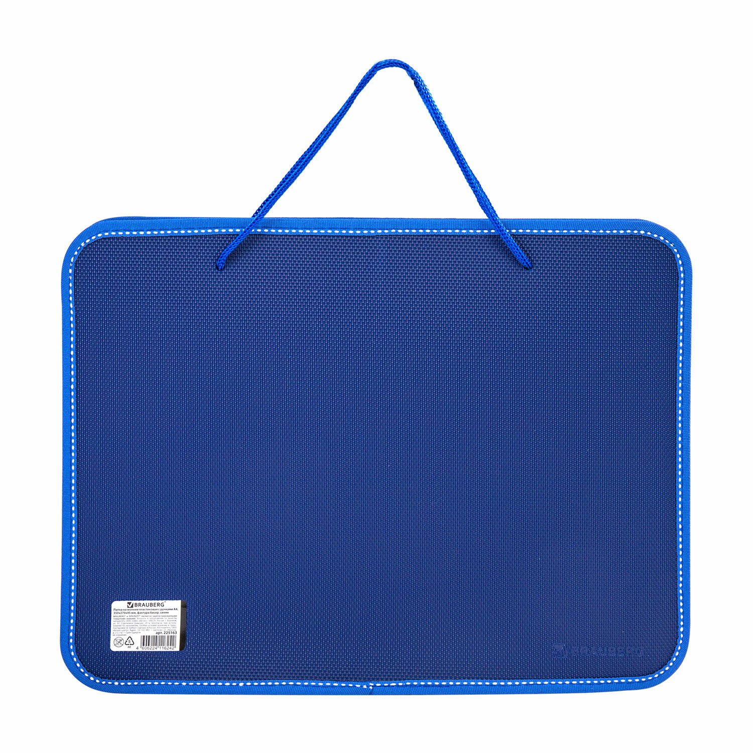 Папка на молнии пластиковая с ручками BRAUBERG, А4, 350х270х45 мм, фактура бисер, синяя, 225163