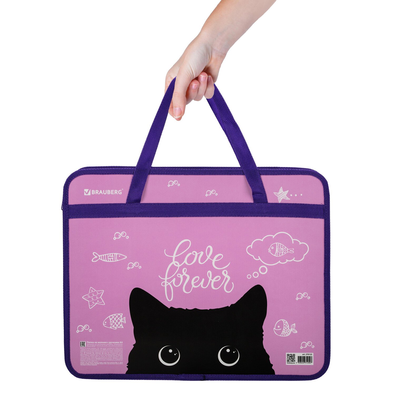 Папка на молнии с ручками BRAUBERG А4, 1 отделение, пластик, 80 мм, "Black Cat", 270122
