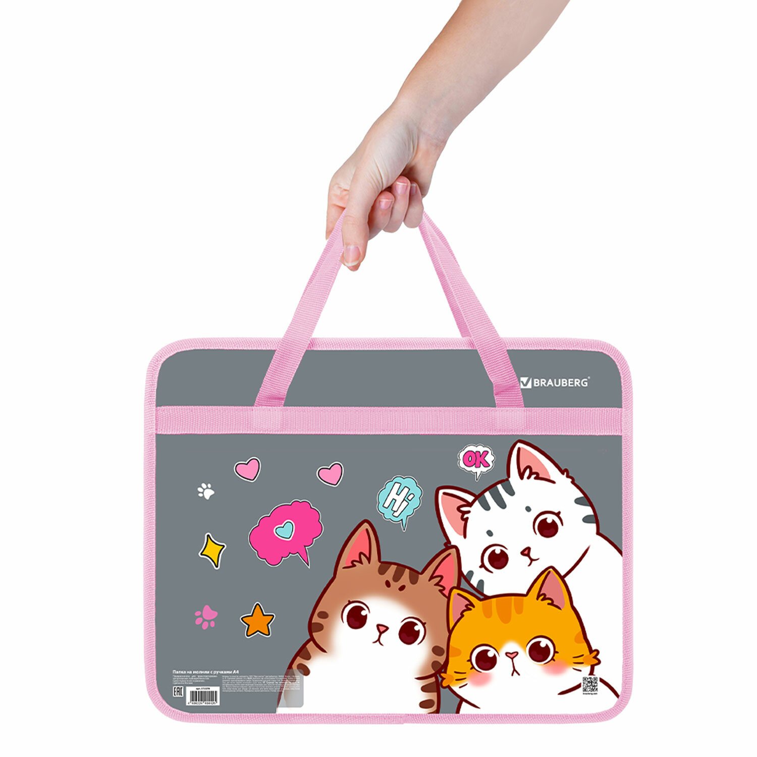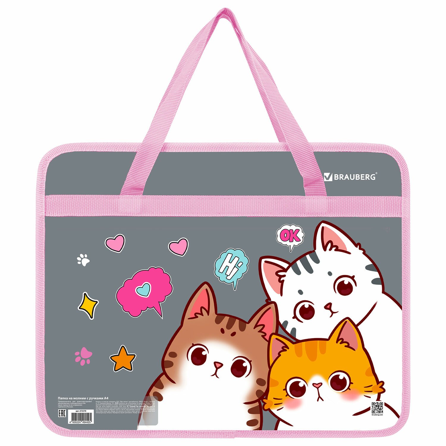 Папка на молнии с ручками BRAUBERG А4, 1 отделение, пластик, 80 мм, "Black Cat", 270122