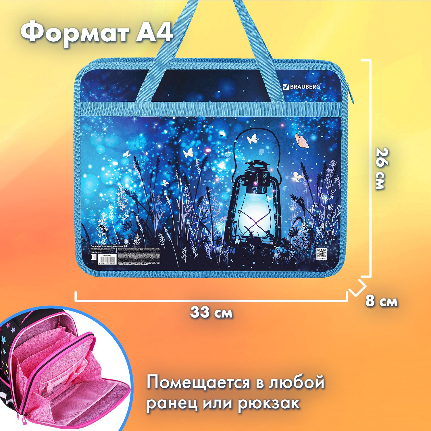 Папка на молнии с ручками BRAUBERG формата А4 выполнена из пластика, по краям имеет тканевую окантовку. Одно отделение. Застежка-молния расположена по верхнему краю папки. Цветная печать.