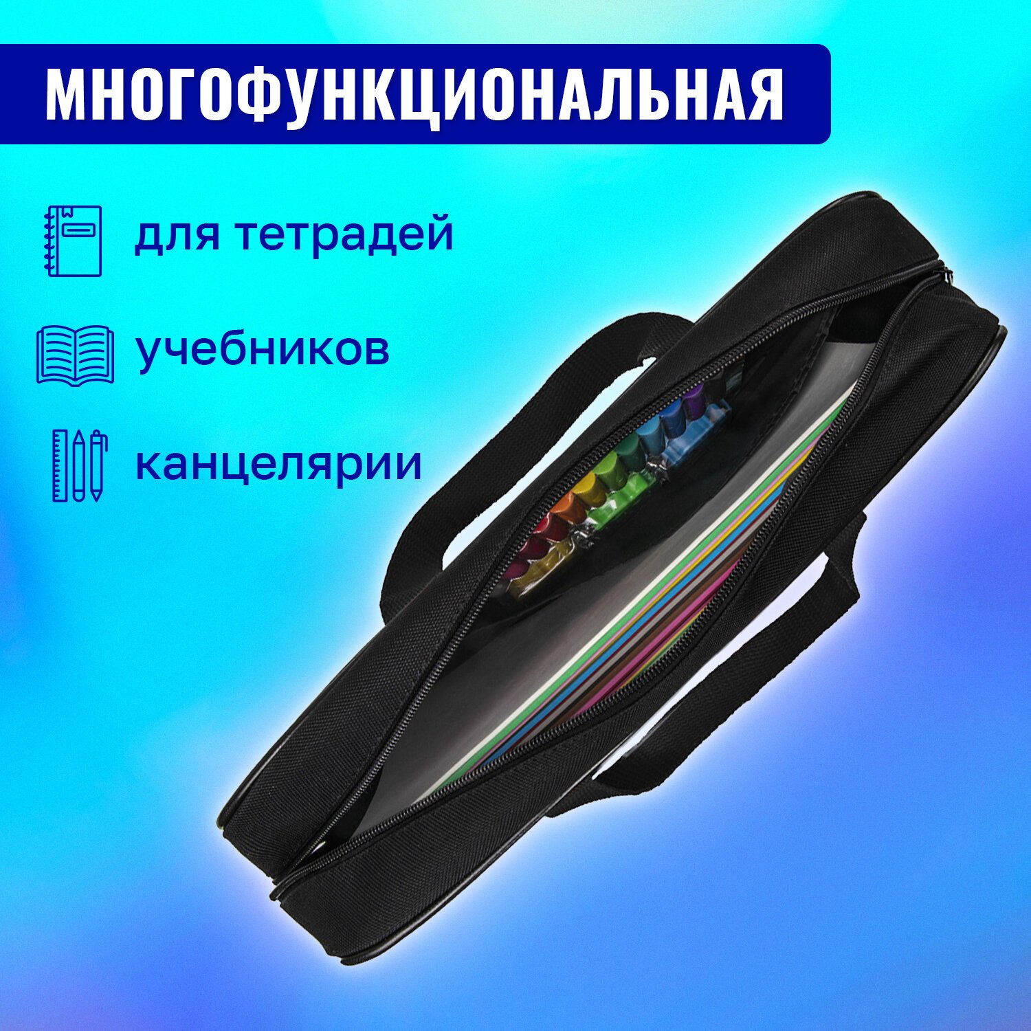 Папка для тетрадей BRAUBERG формата А4 с ручками для переноски. Изготовлена из прочного полиэстера с яркой печатью. Одно отделение. Застегивается на молнию. Папка держит форму за счет прорезиненного канта по краям.