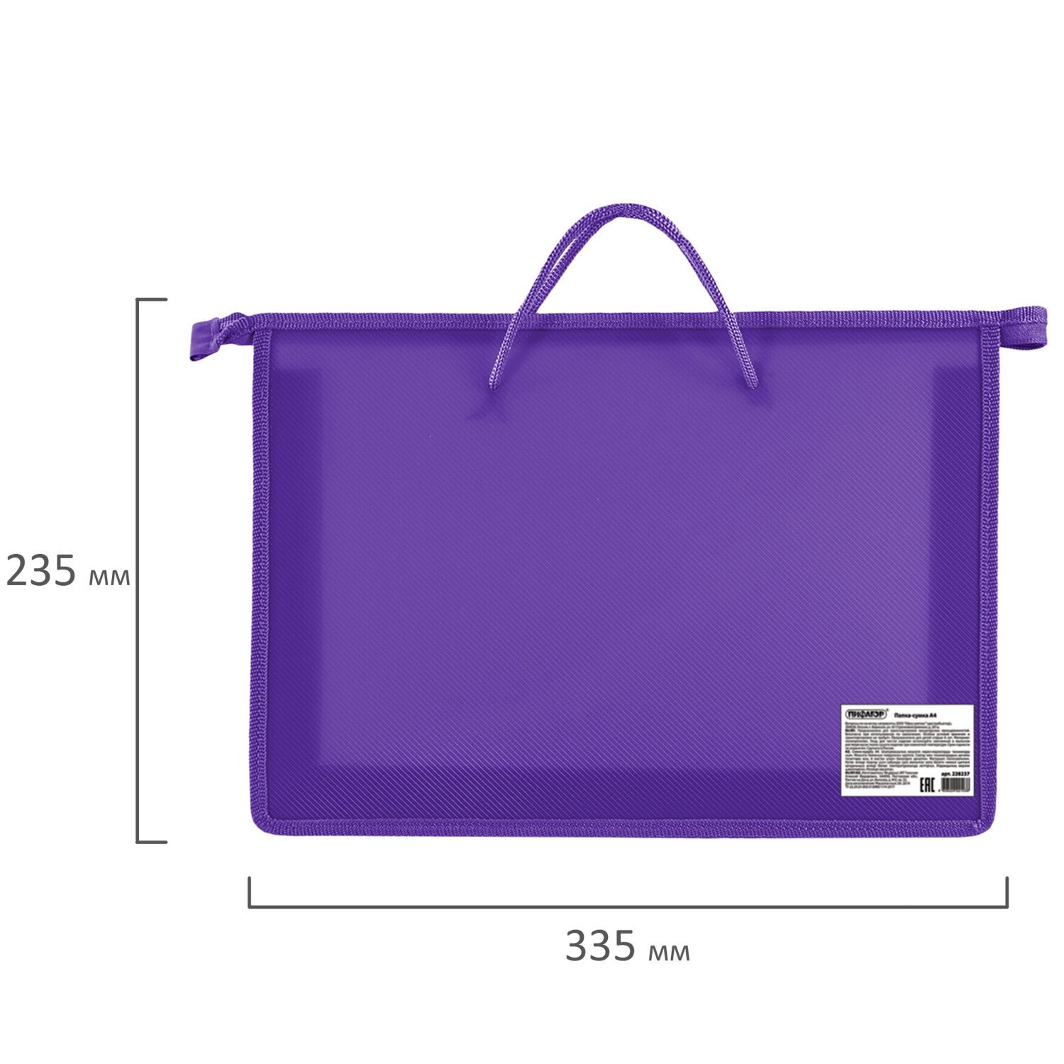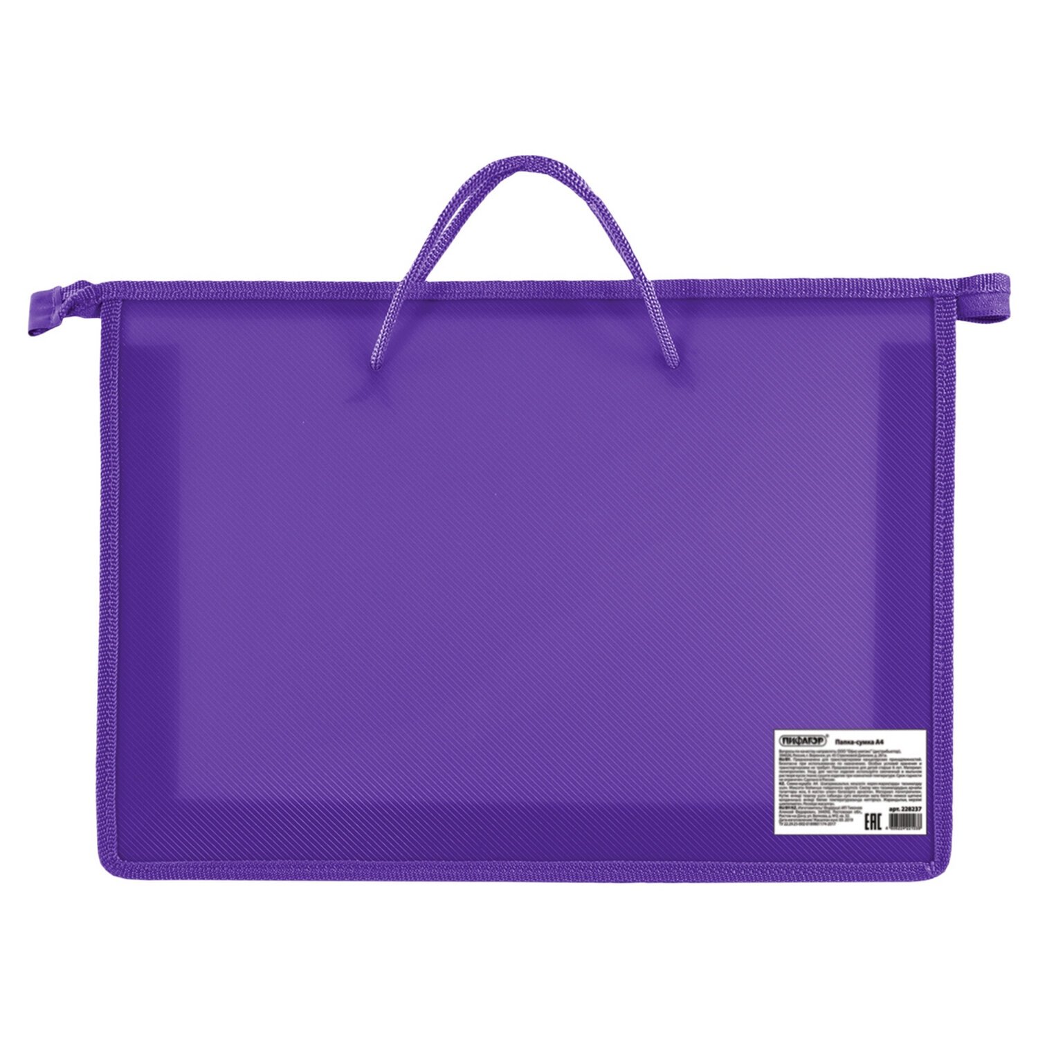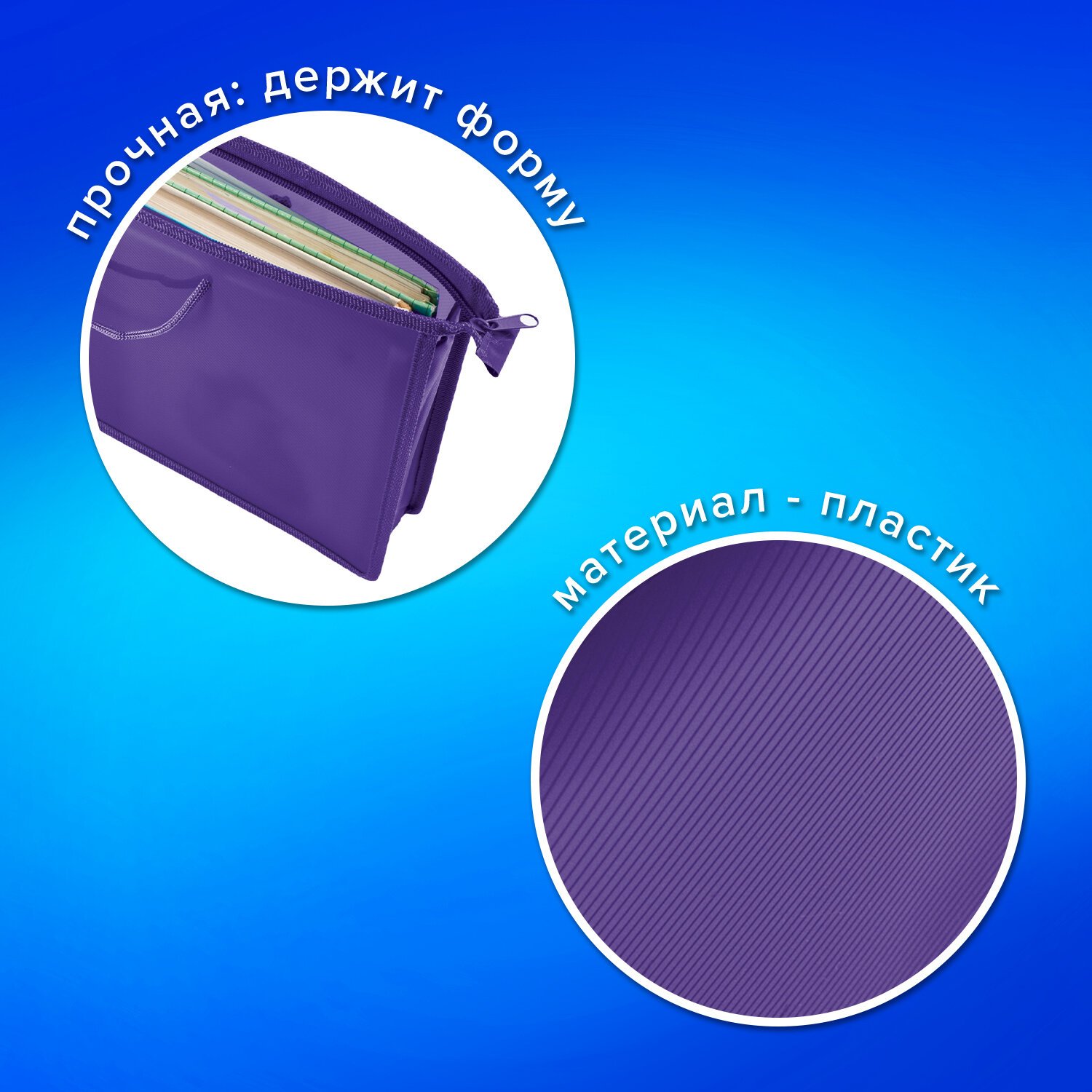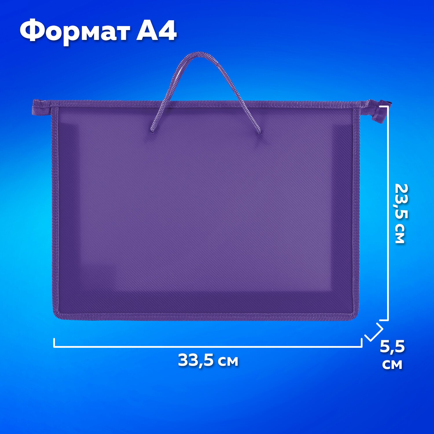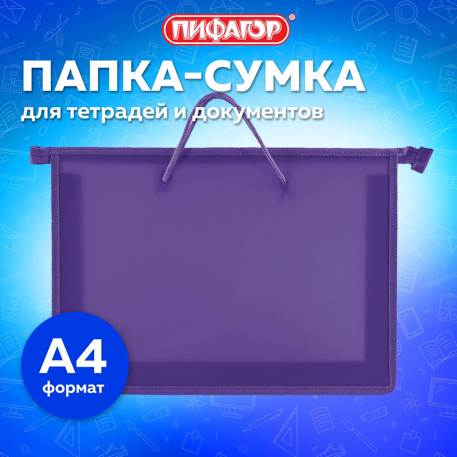 Папка на молнии с ручками ПИФАГОР, А4, 1 отделение, пластик, 55 мм, фиолетовая, 228237