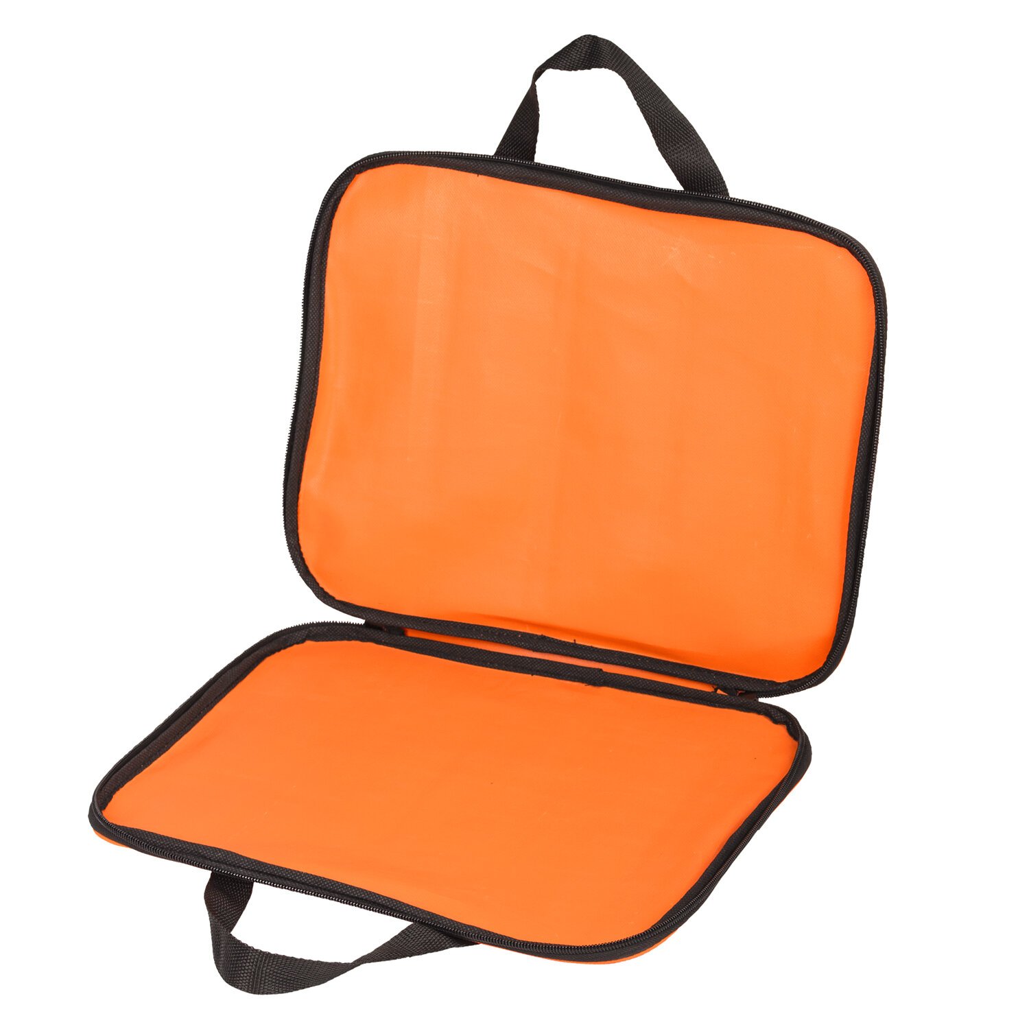 Выполнена из плотного полиэстера, что позволяет защитить документы, учебные пособия и прочие бумаги от замятий и повреждений. Ручки-тесьма. Застежка-молния по периметру папки, на молнии расположены 2 бегунка, поэтому папку можно открывать с любой стороны, а также полностью раскрыть на 180 градусов.
