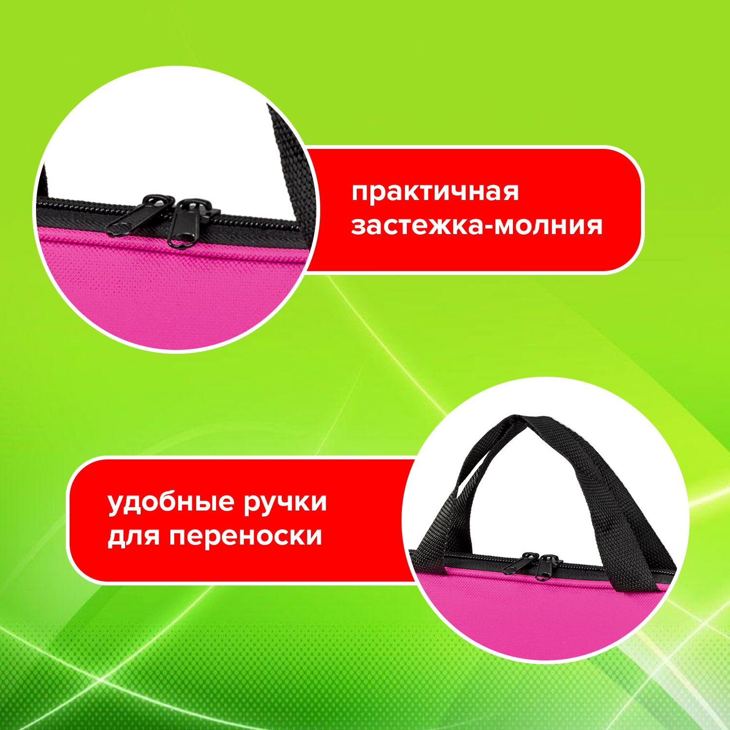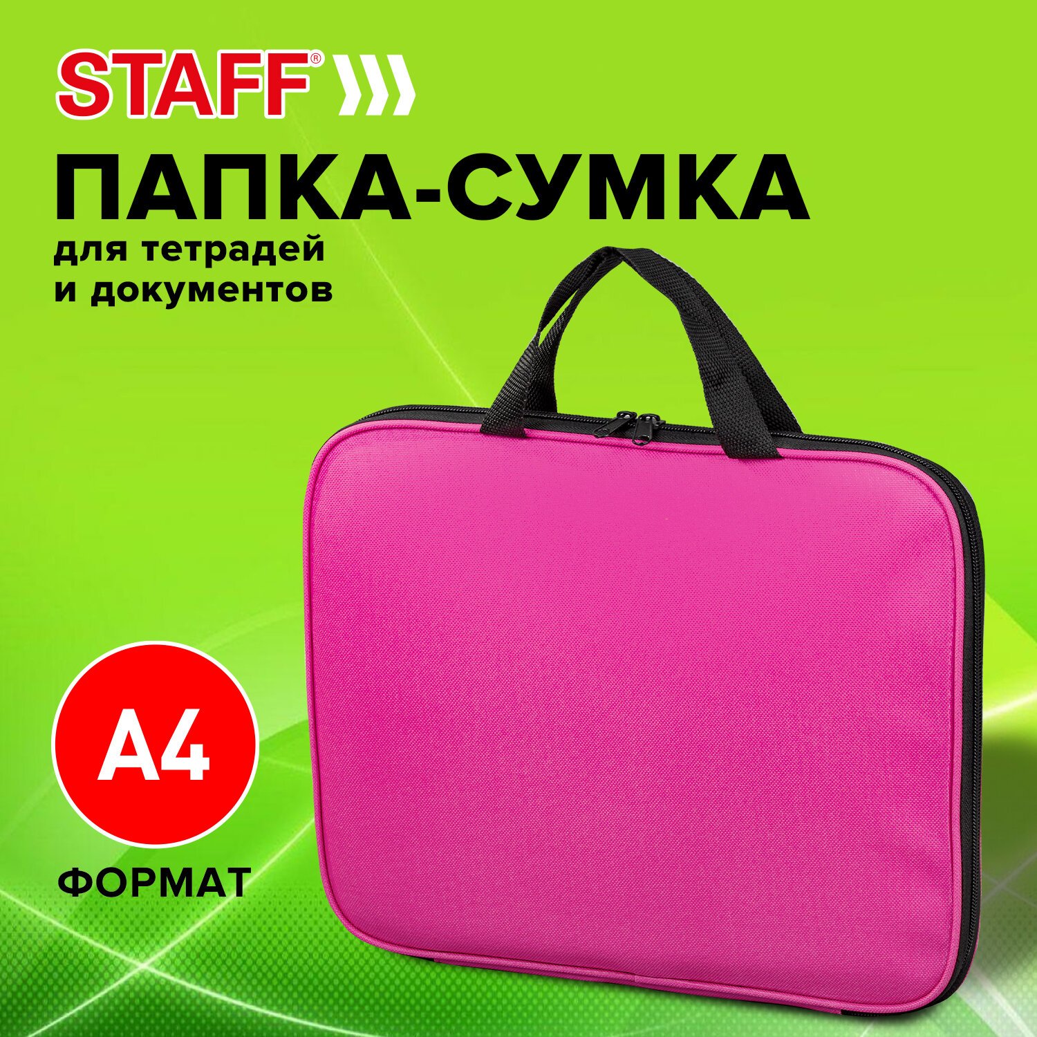 Папка на молнии с ручками STAFF EVERYDAY, А4, полиэстер, ярко-розовая, 270734