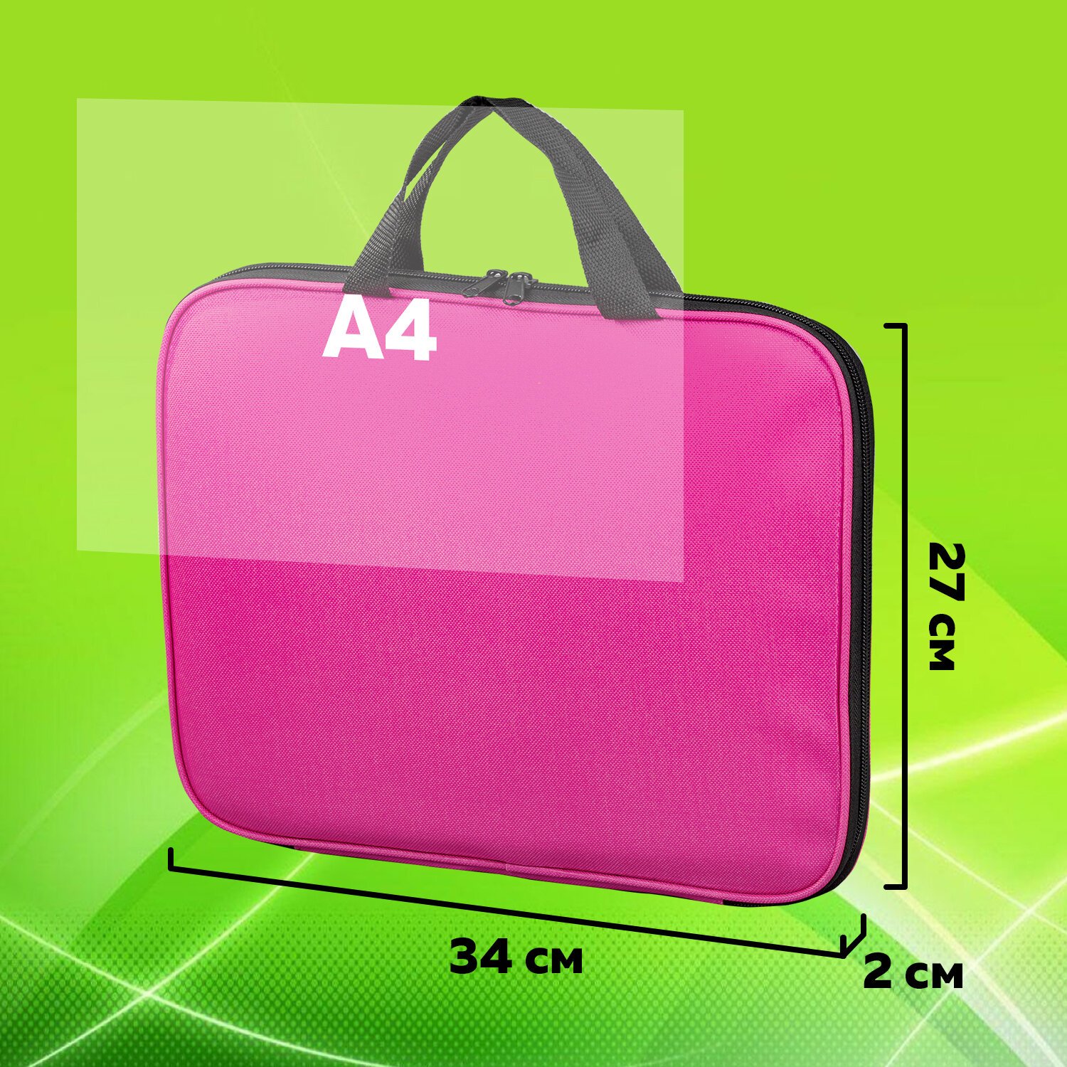 Выполнена из плотного полиэстера, что позволяет защитить документы, учебные пособия и прочие бумаги от замятий и повреждений. Ручки-тесьма. Застежка-молния по периметру папки, на молнии расположены 2 бегунка, поэтому папку можно открывать с любой стороны, а также полностью раскрыть на 180 градусов.
