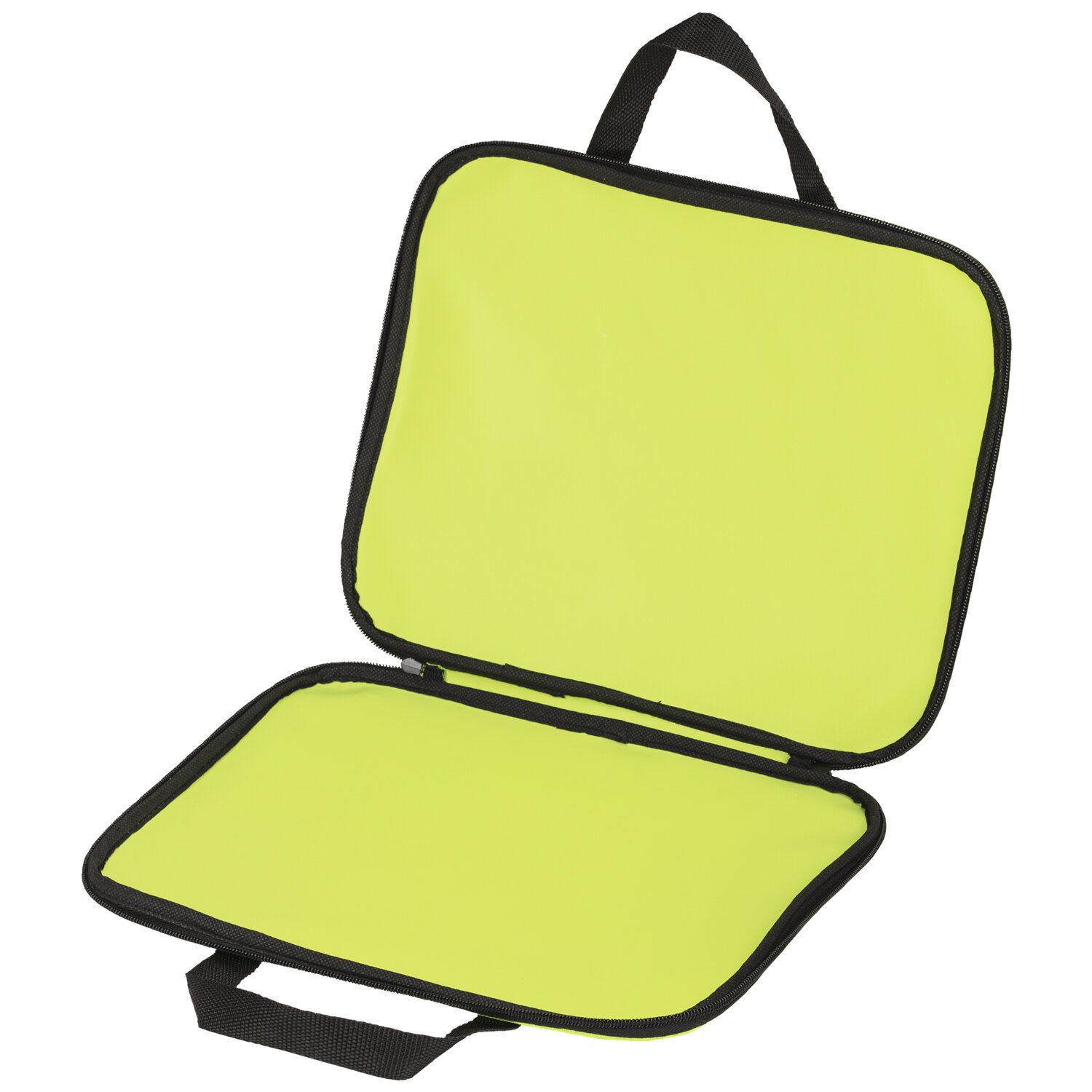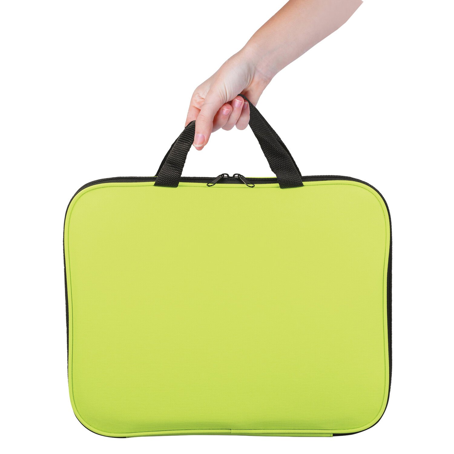 Выполнена из плотного полиэстера, что позволяет защитить документы, учебные пособия и прочие бумаги от замятий и повреждений. Ручки-тесьма. Застежка-молния по периметру папки, на молнии расположены 2 бегунка, поэтому папку можно открывать с любой стороны, а также полностью раскрыть на 180 градусов.