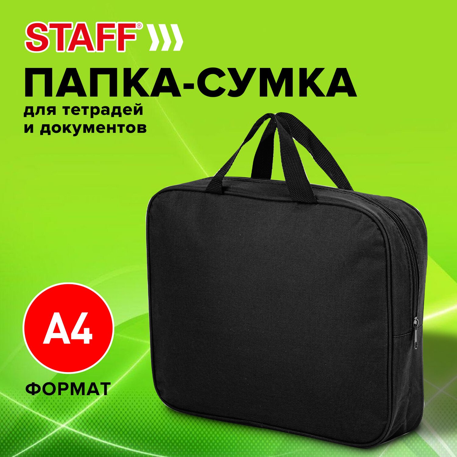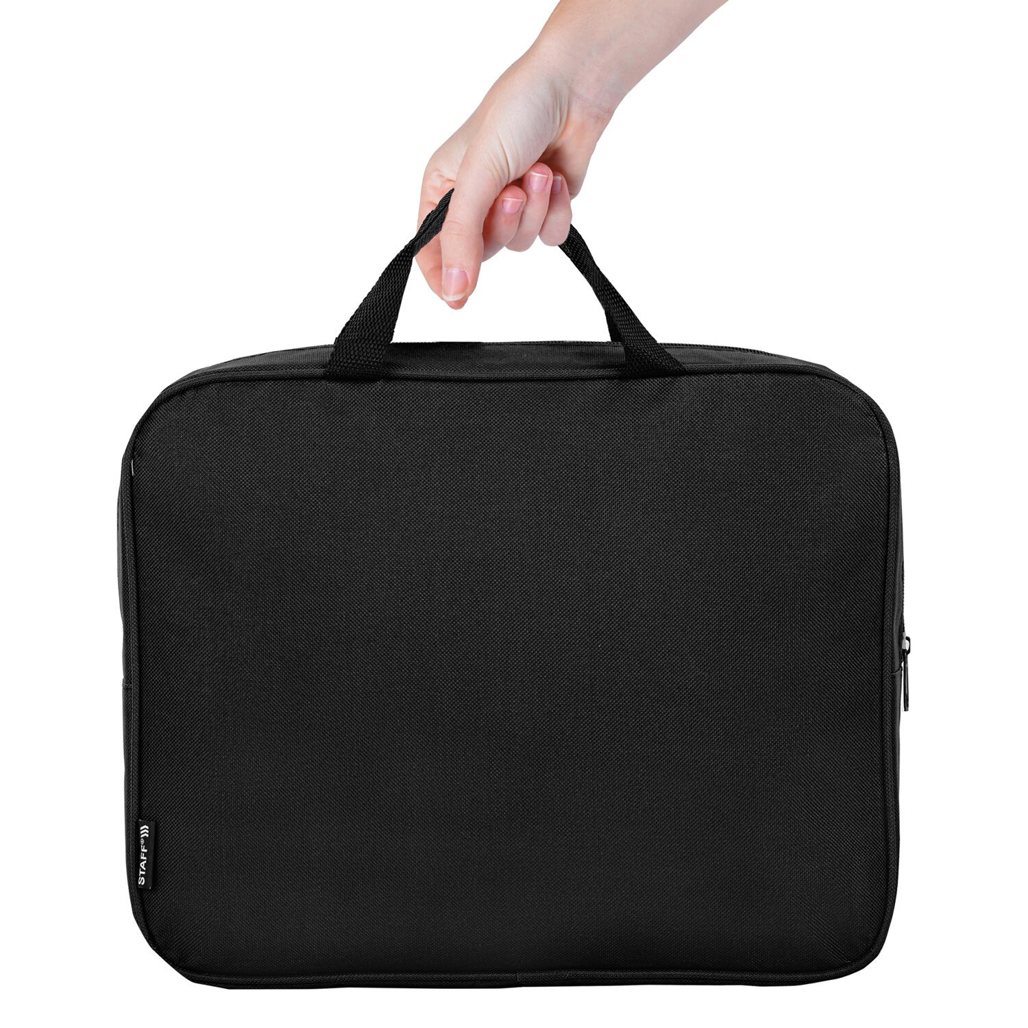 Папка-сумка для бумаг STAFF EVERYDAY формата А4 с ручками. Изготовлена из прочного полиэстера. Одно отделение, дополнительный карман внутри папки. Застегивается на молнию. Папка держит форму за счет прорезиненного канта по краям.