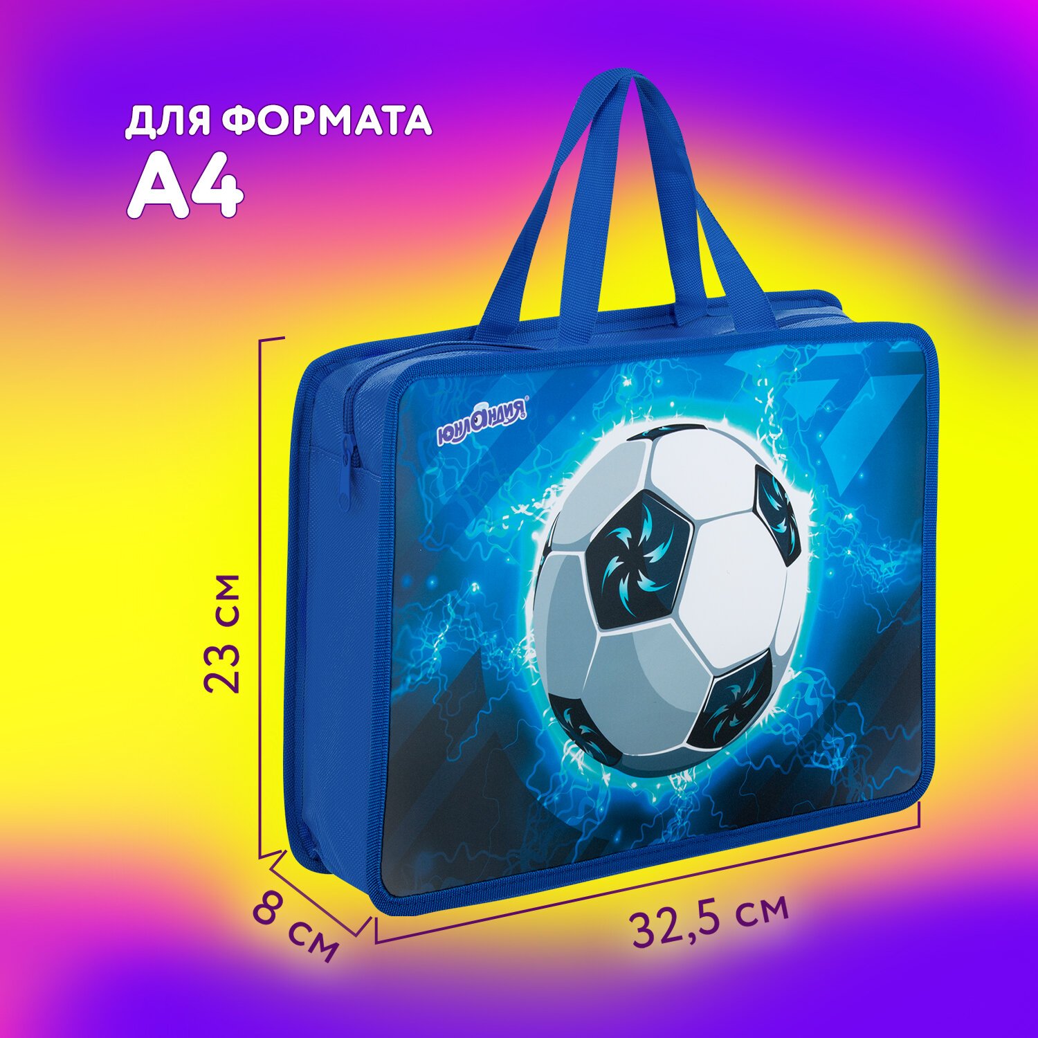 Папка на молнии с ручками ЮНЛАНДИЯ А4, 1 отделение, пластик, 80 мм, "Football", 272158