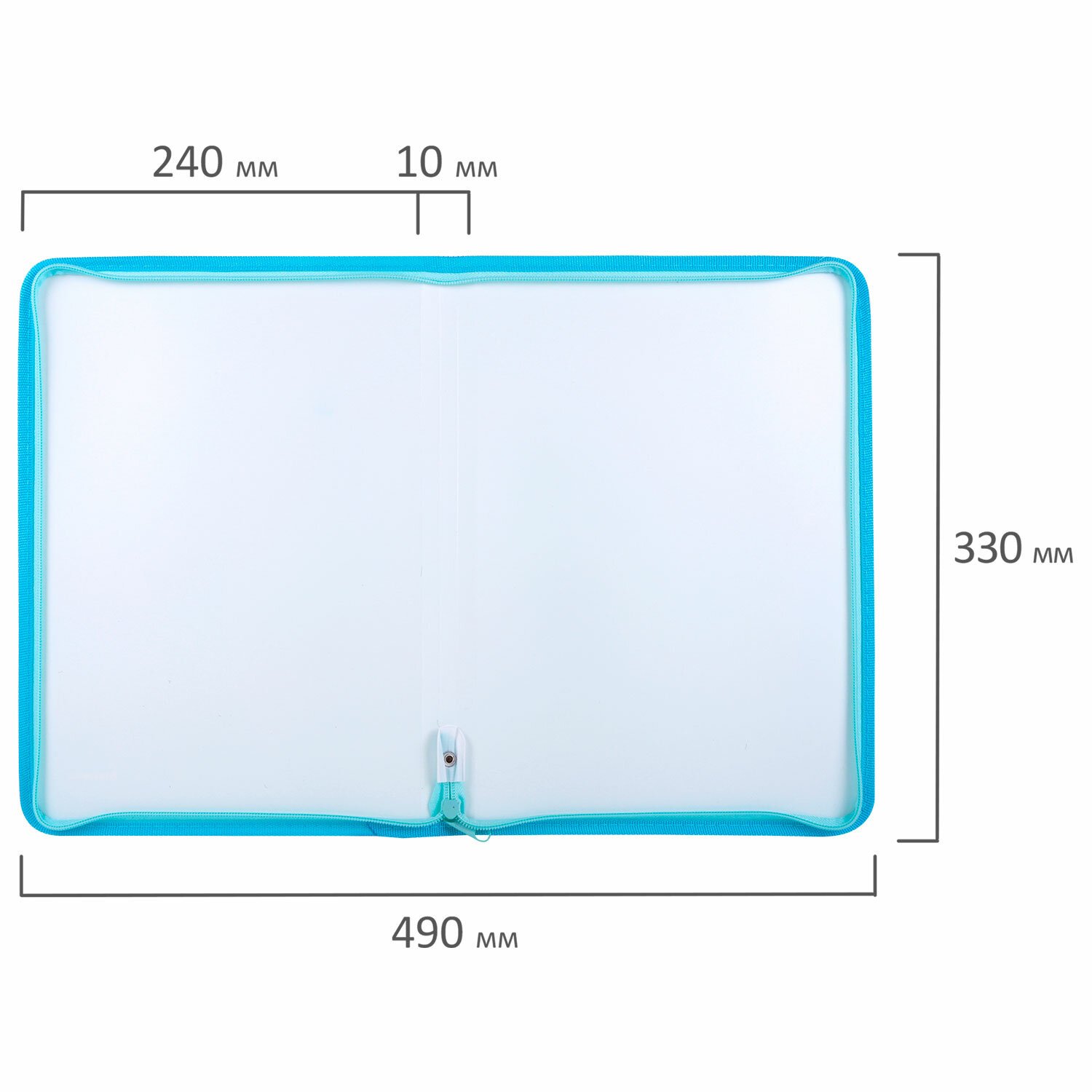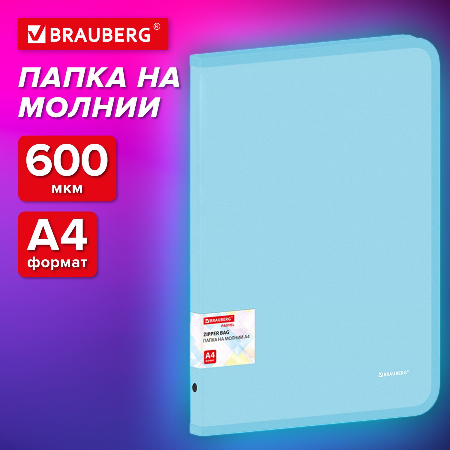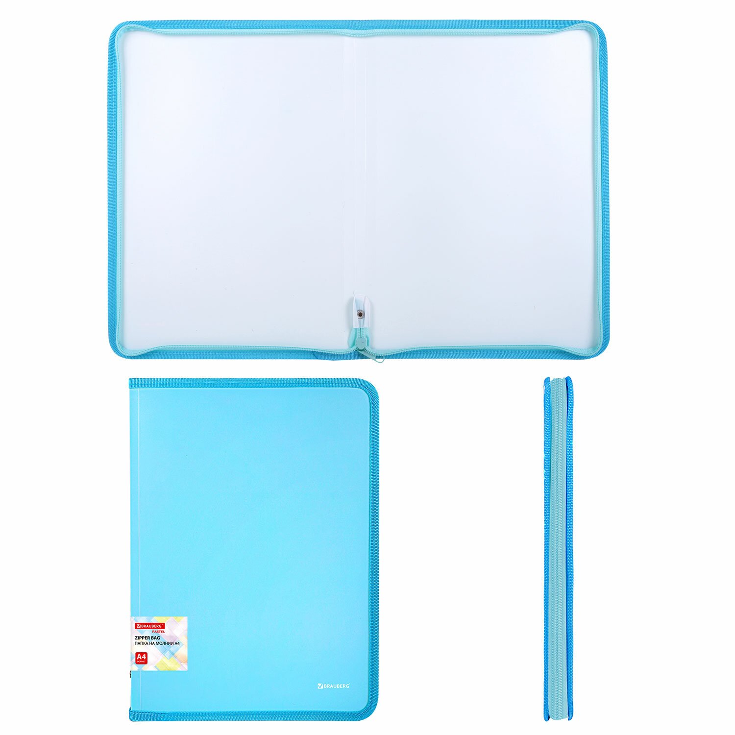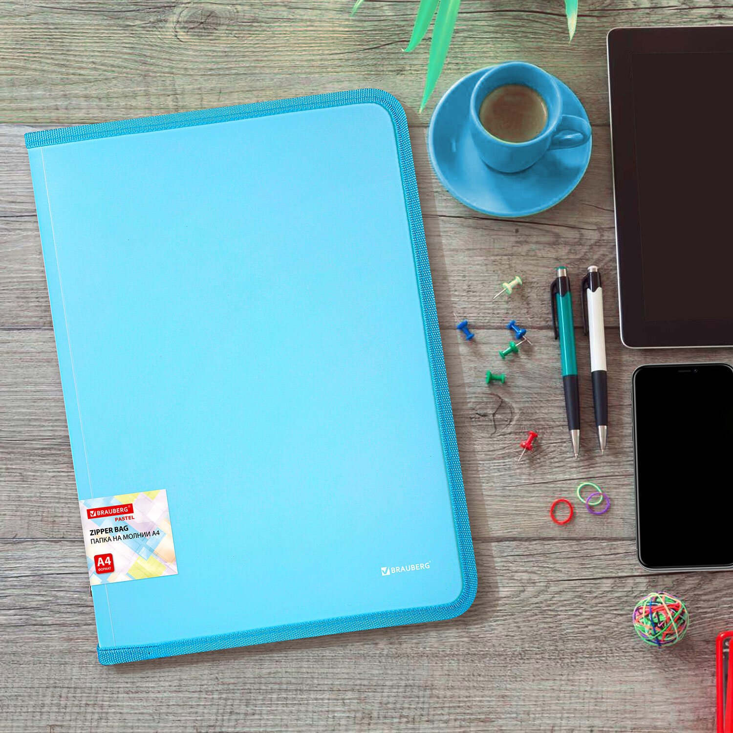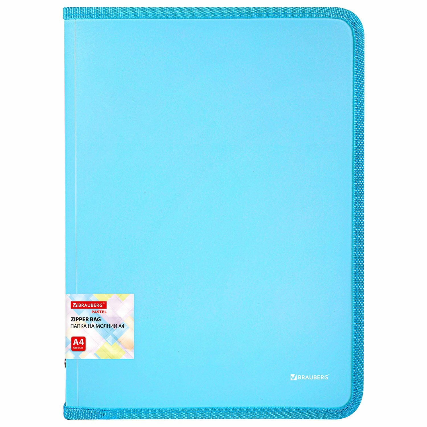 Папка объемная на молнии пластиковая BRAUBERG PASTEL, А4, 330х240 мм, 600 мкм, цвет аквамарин, 271970