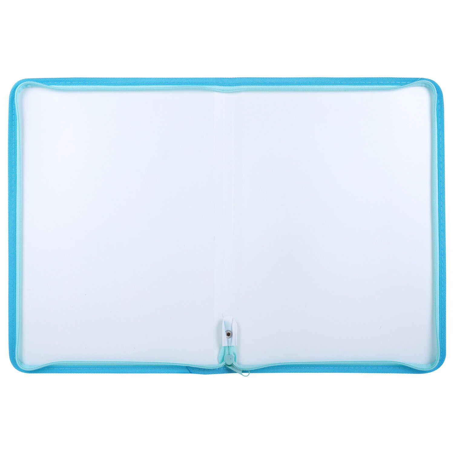 Изготовлена из прочного непрозрачного матового пластика толщиной 600 микрон. Формат А4 (330x240 мм). Надежный замок-молния защищает документы от механических повреждений, пыли и влаги. Папка представлена в красивом пастельно-голубом цвете.