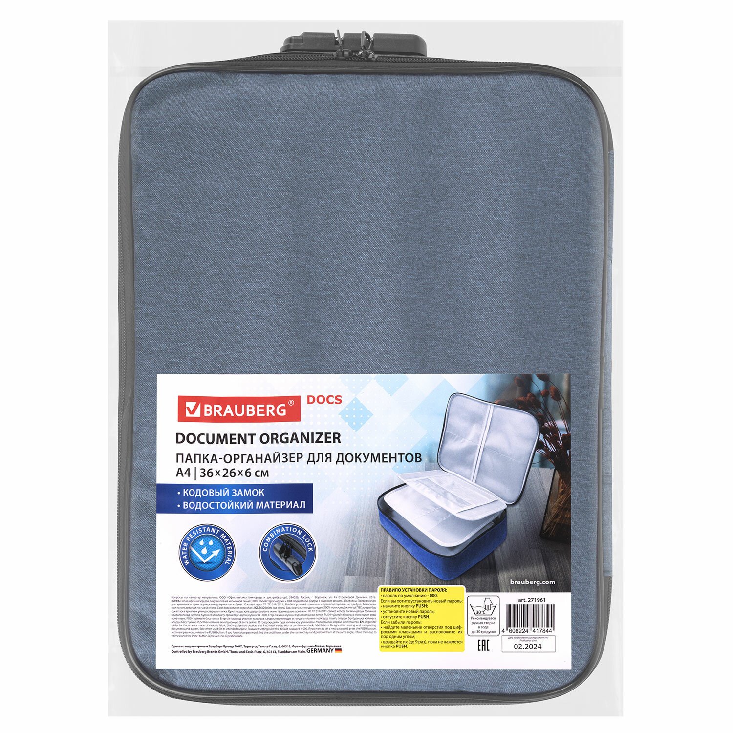 Папка-органайзер для документов с кодовым замком СИНИЙ ВОДОНЕПРОНИЦАЕМЫЙ А4, BRAUBERG DOCS, 271961
