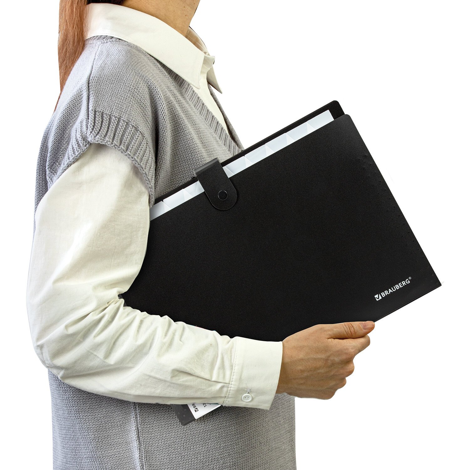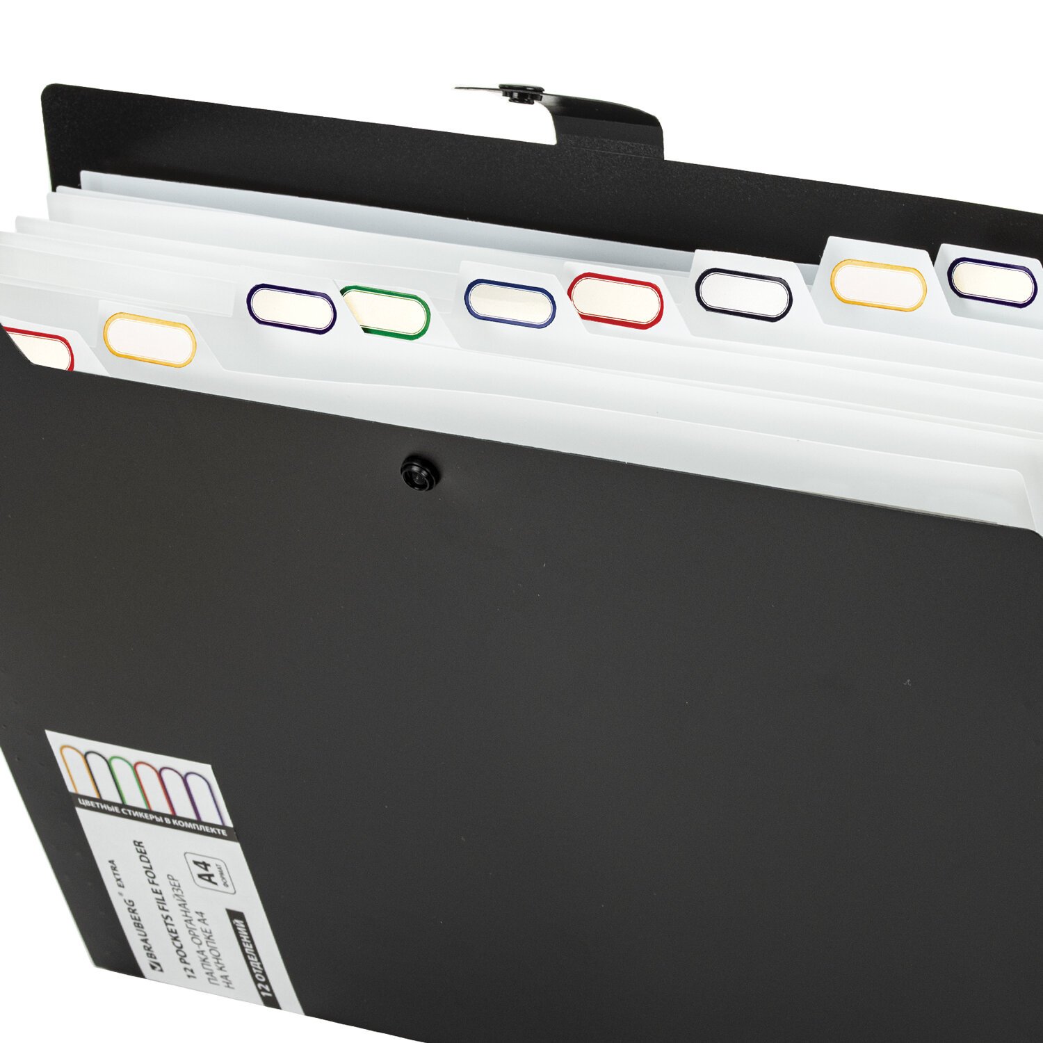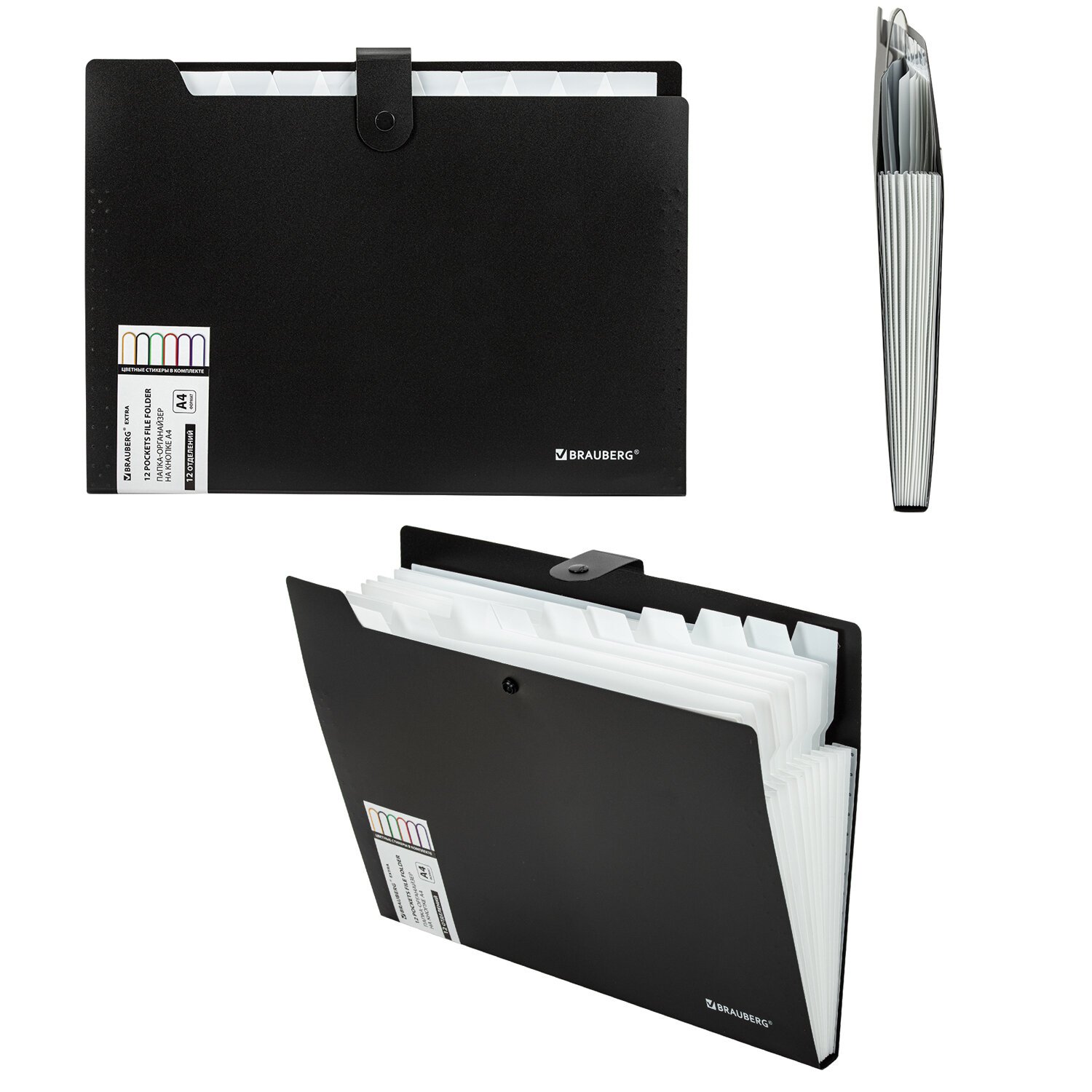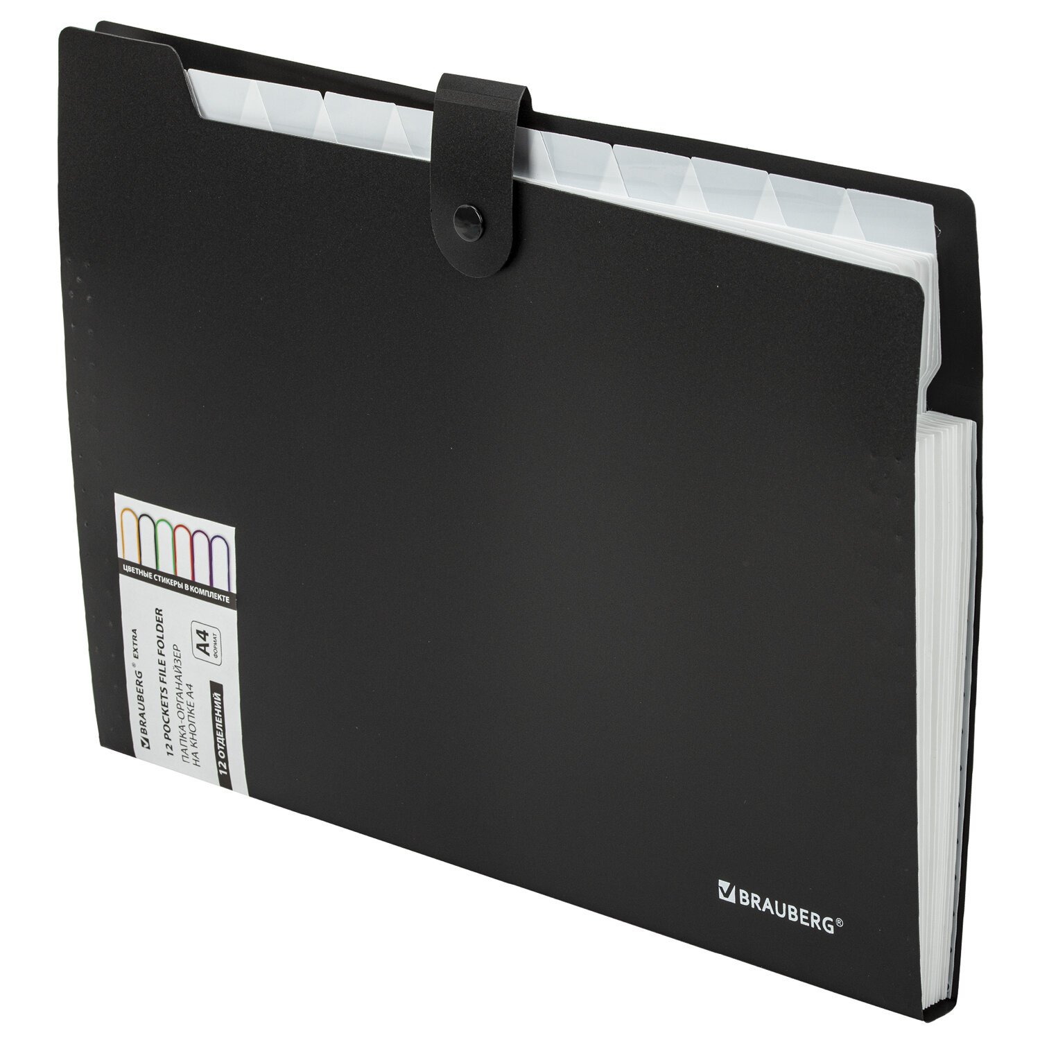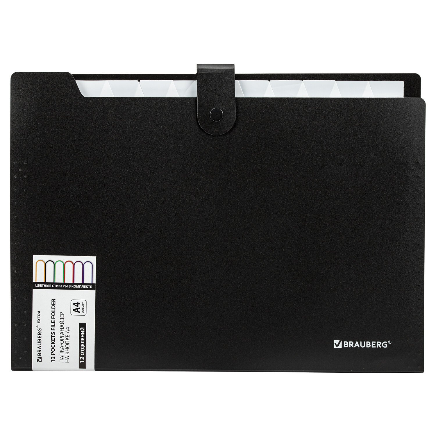 Папка-органайзер на кнопке 12 отделений, BRAUBERG "Extra", А4, черная с белым, 271930