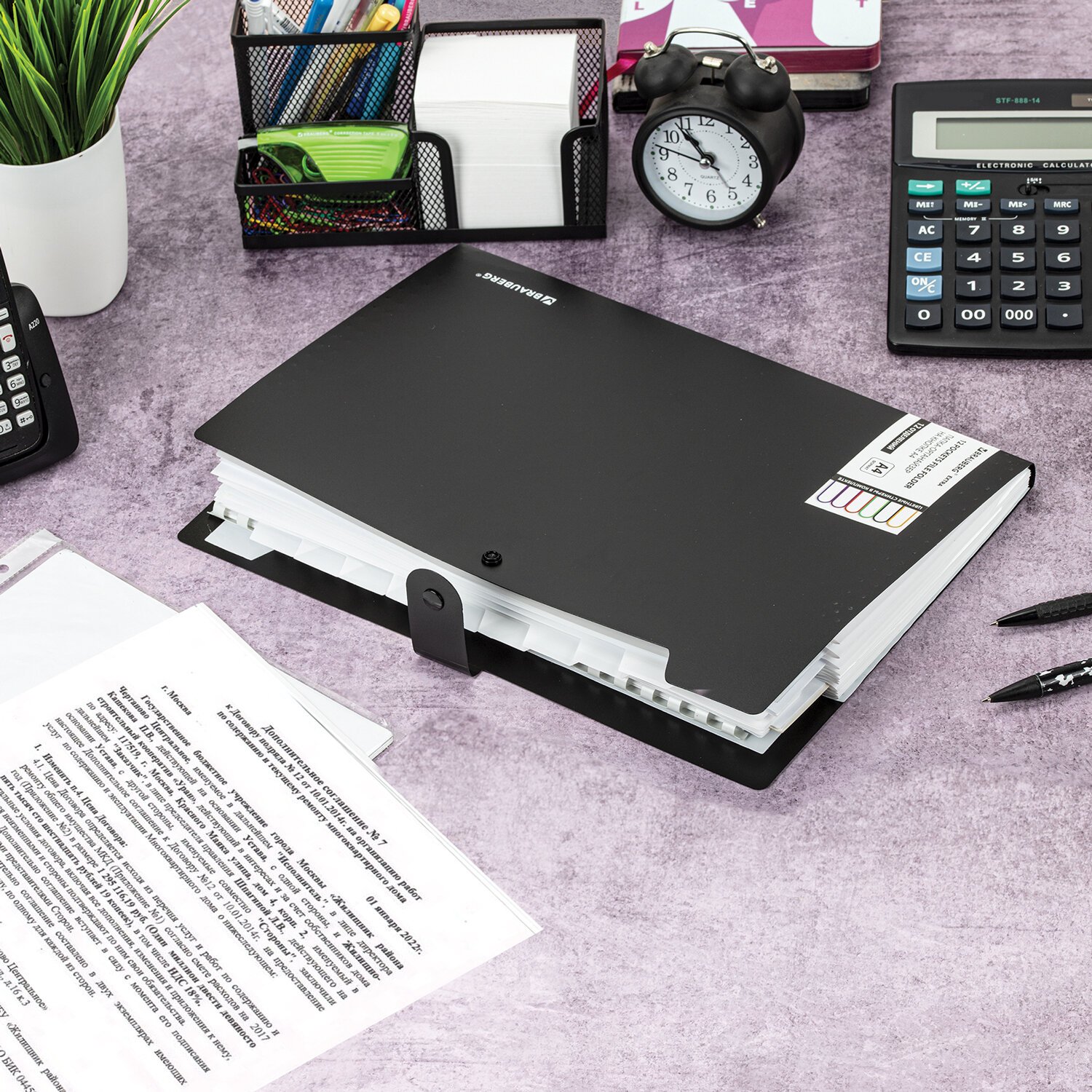 Папка для бумаг и документов с замком и 13 отделениями BRAUBERG "HIT", А4, пластик, черная, 229572