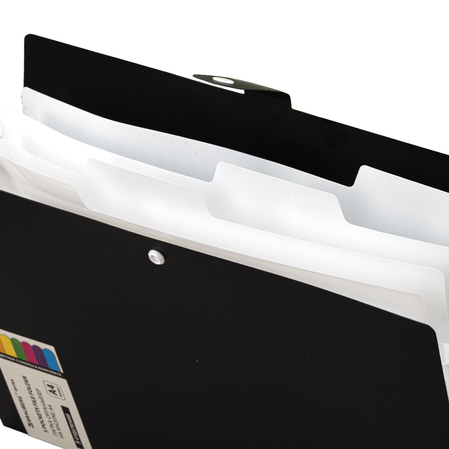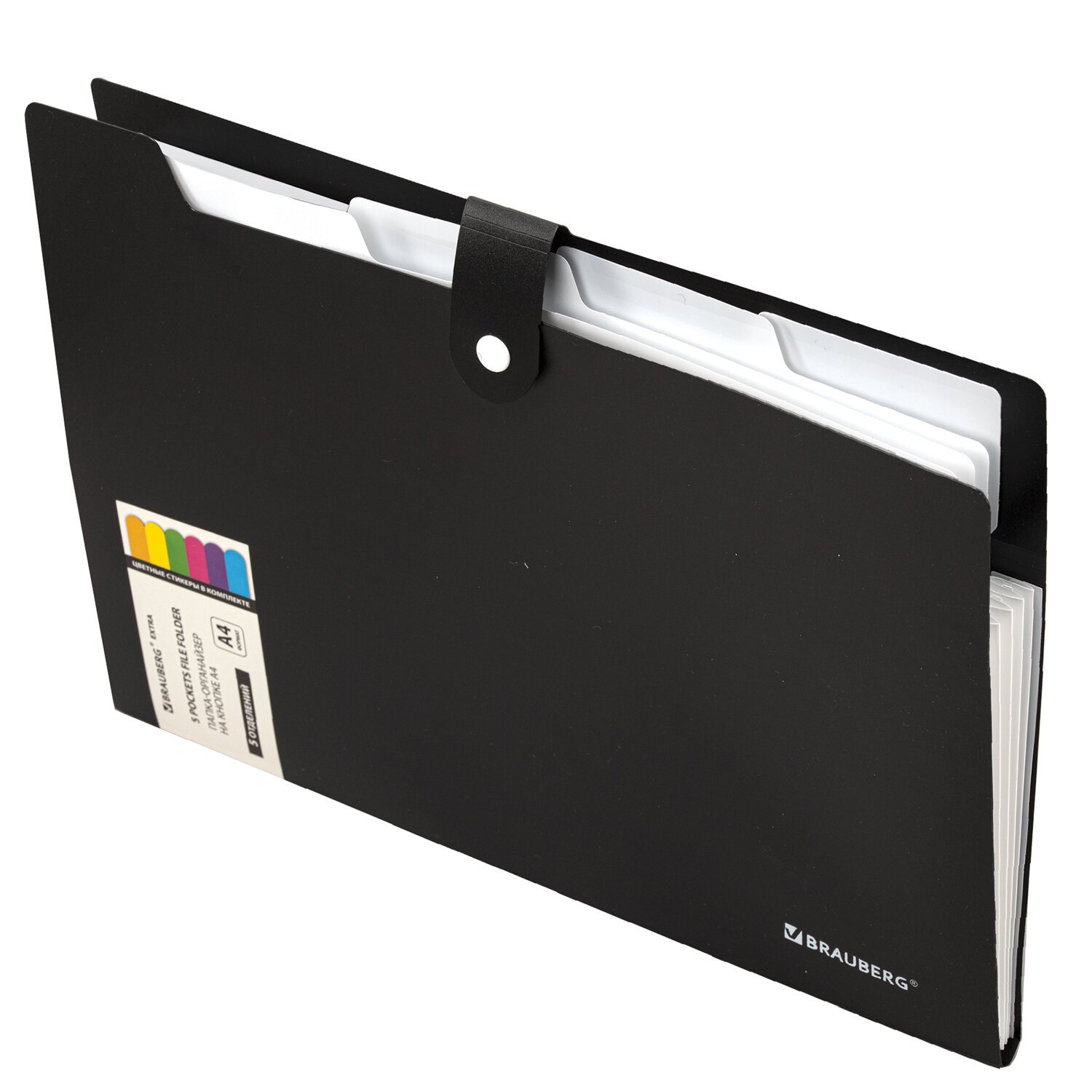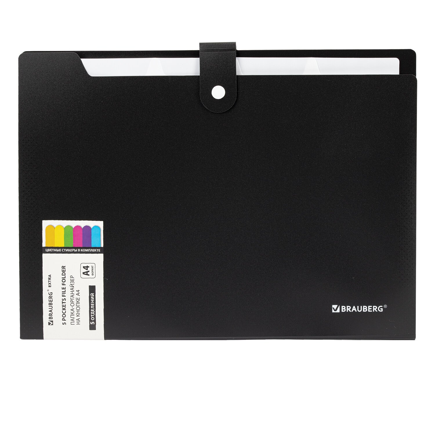 Папка-органайзер на кнопке 5 отделений, BRAUBERG "Extra", А4, черная с белым, 274094