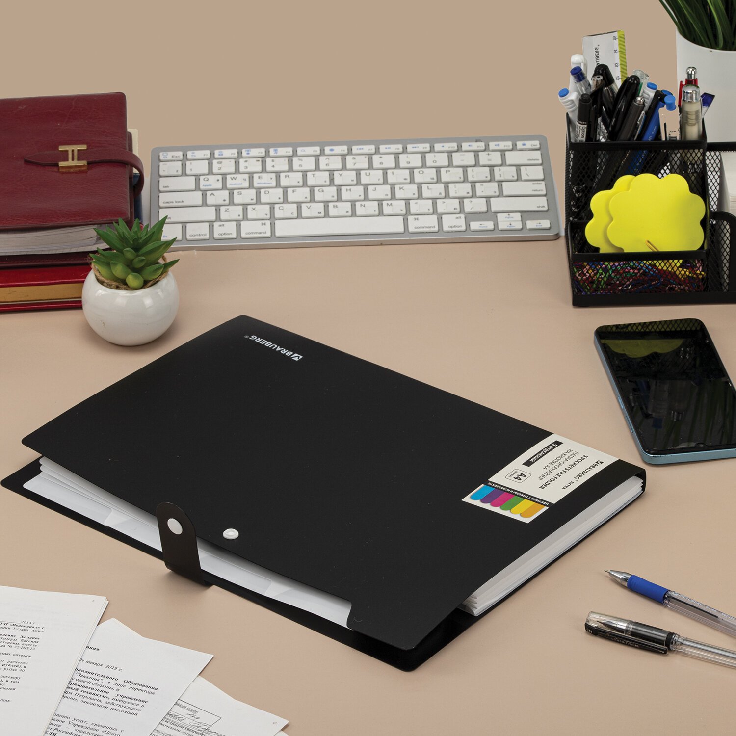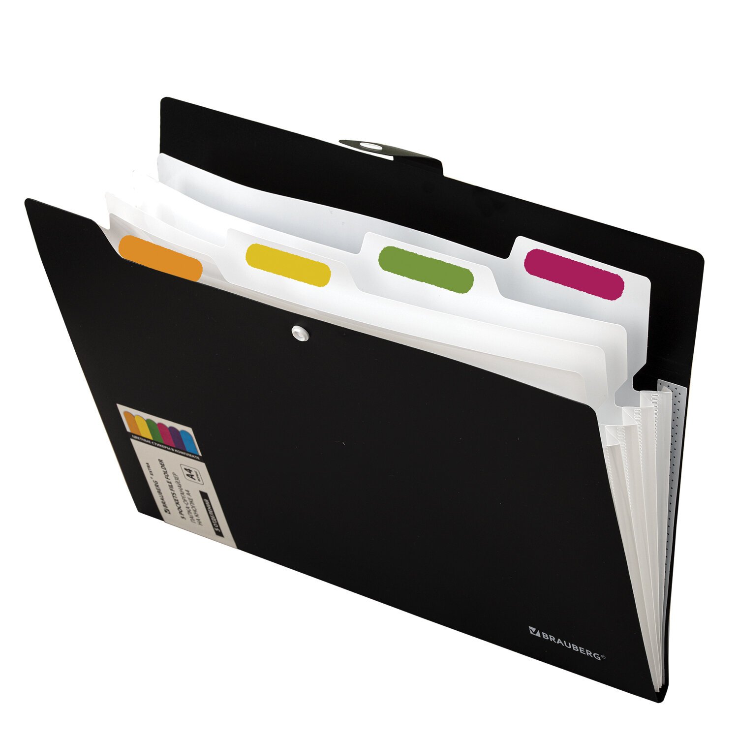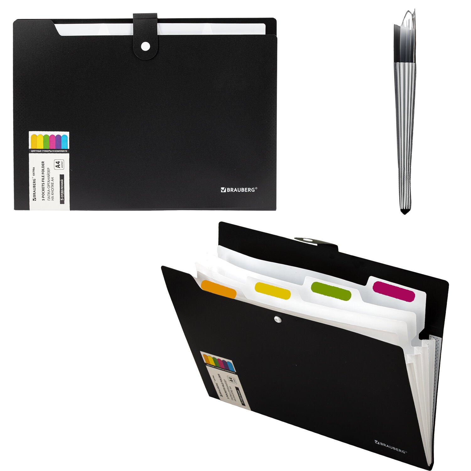 Папка-органайзер на кнопке 5 отделений, BRAUBERG "Extra", А4, черная с белым, 274094