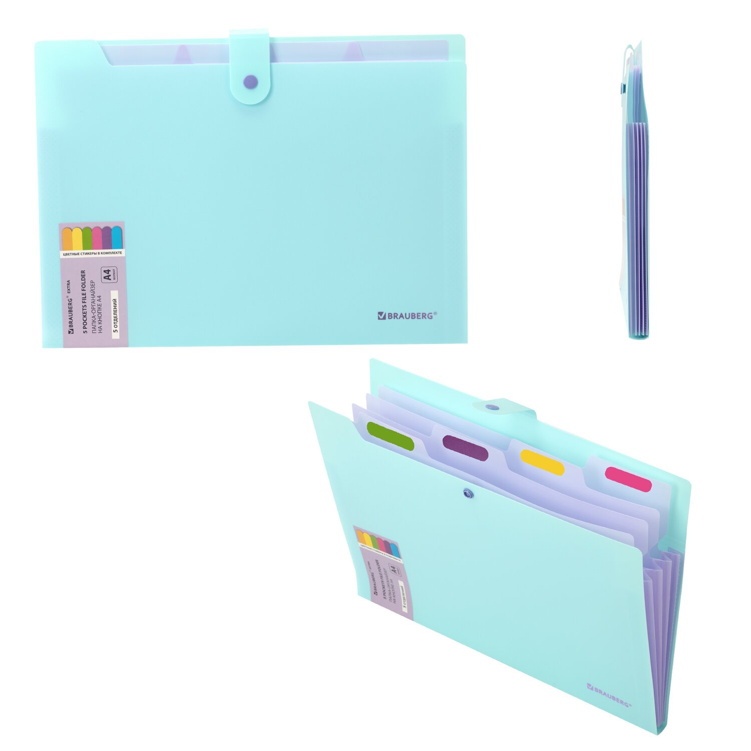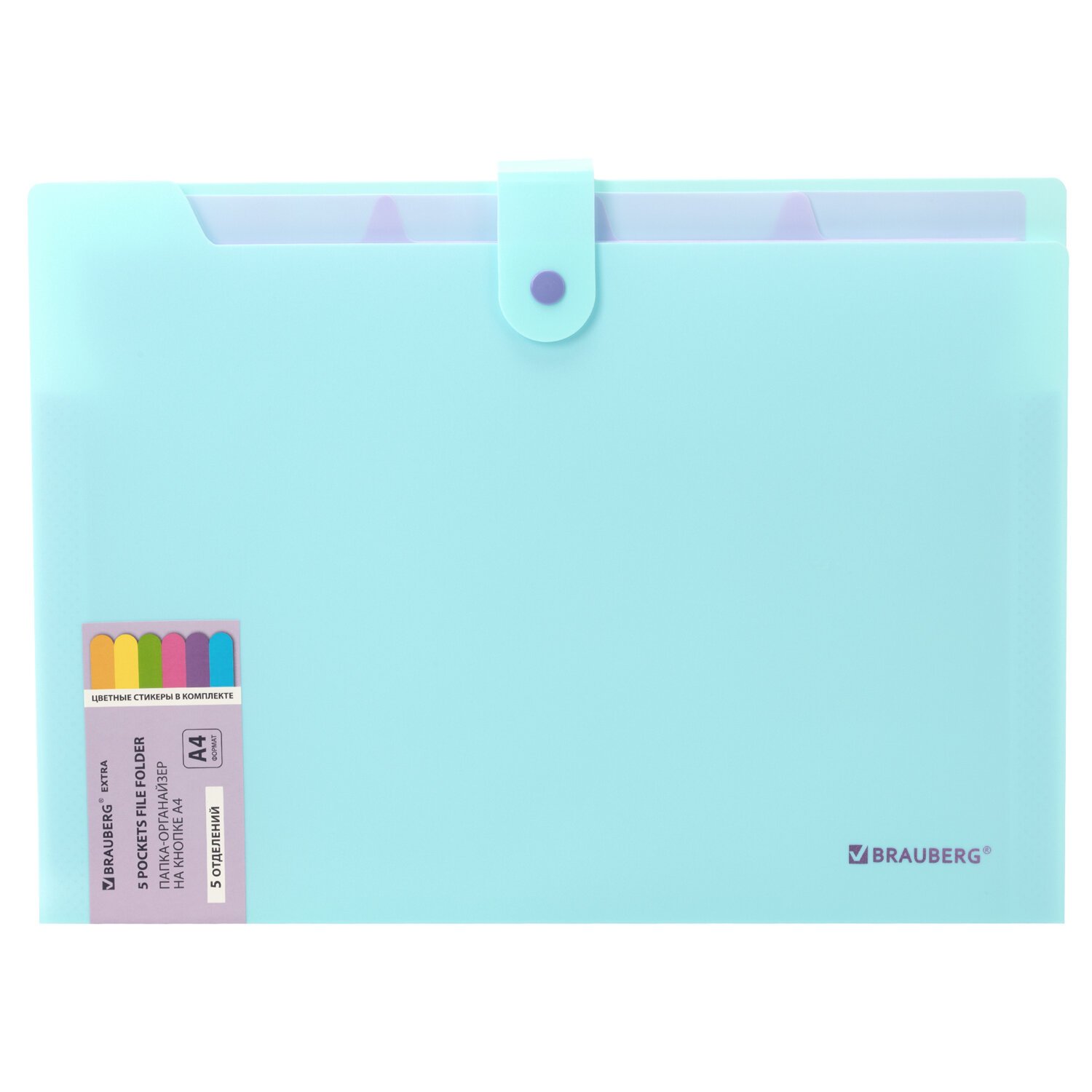 Папка-органайзер на кнопке 5 отделений, BRAUBERG "Extra", А4, голубая с лиловым, 274099