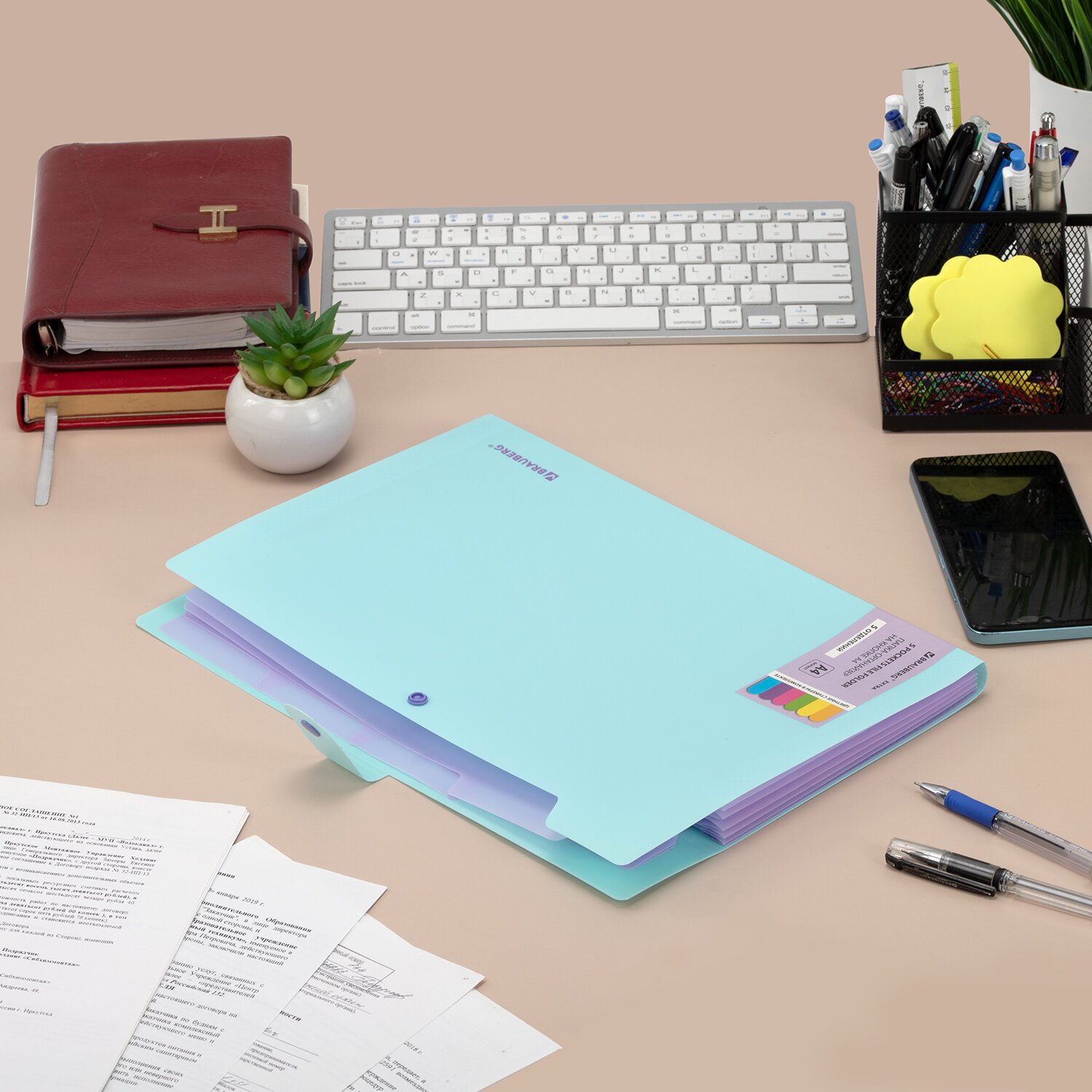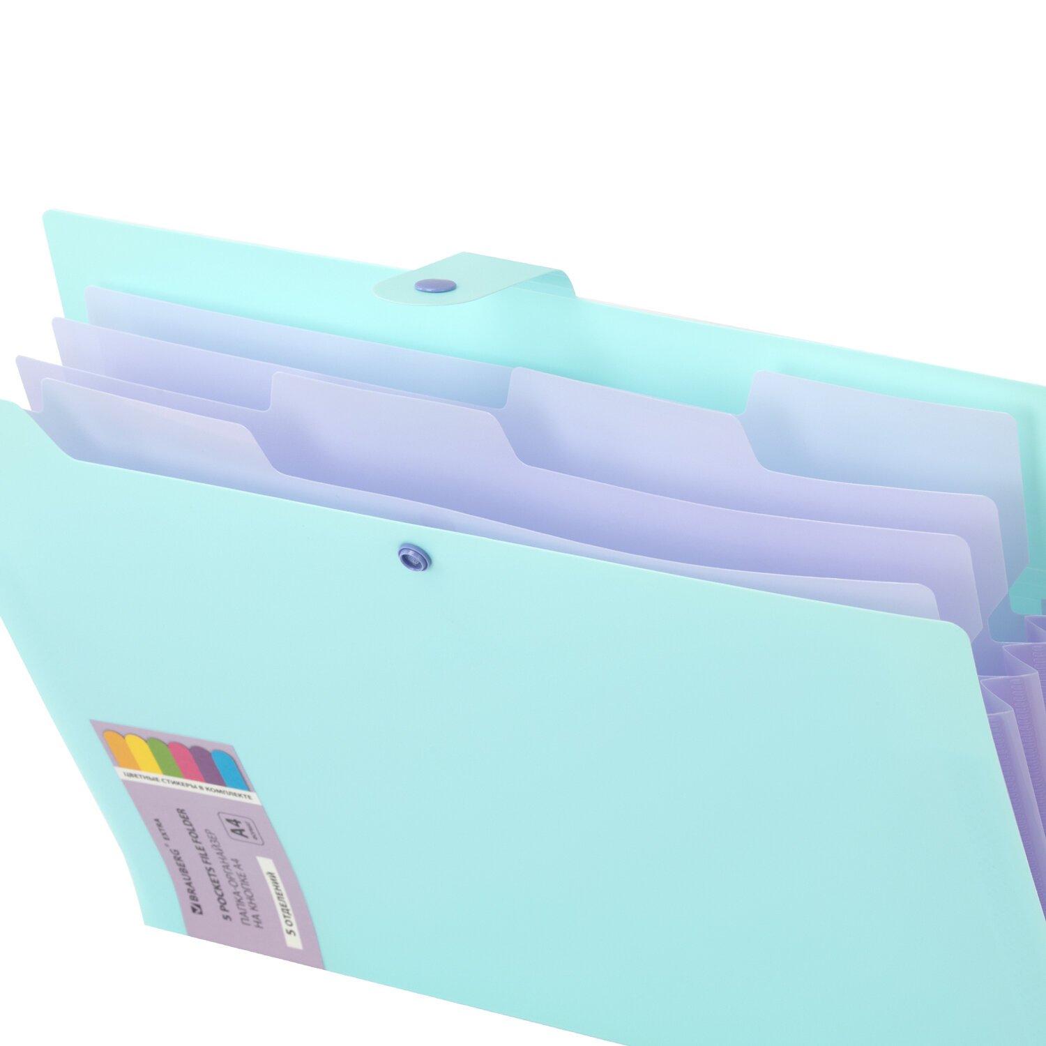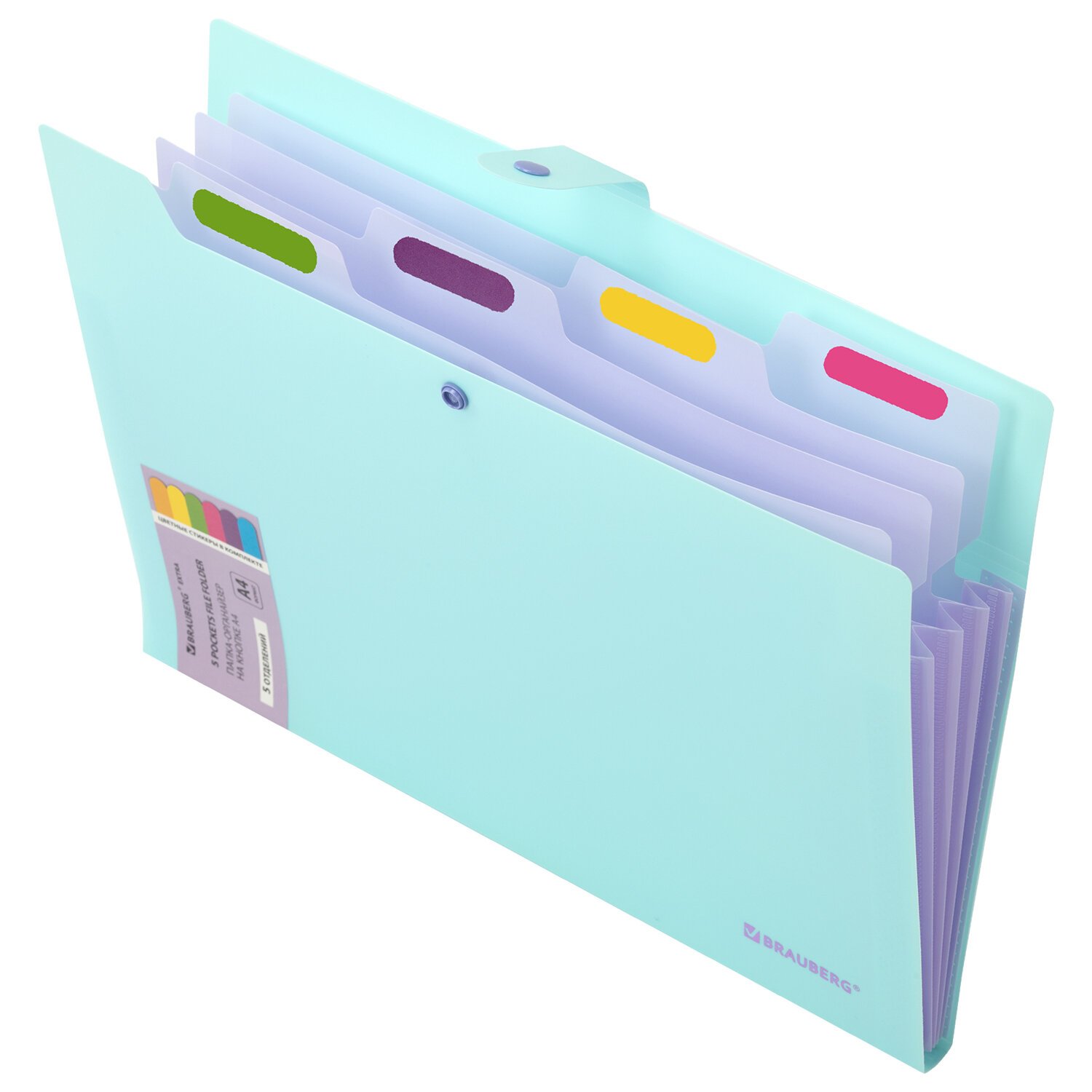 Папка-органайзер на кнопке 5 отделений, BRAUBERG GRADE, A4, зелено-голубой градиент, 274092