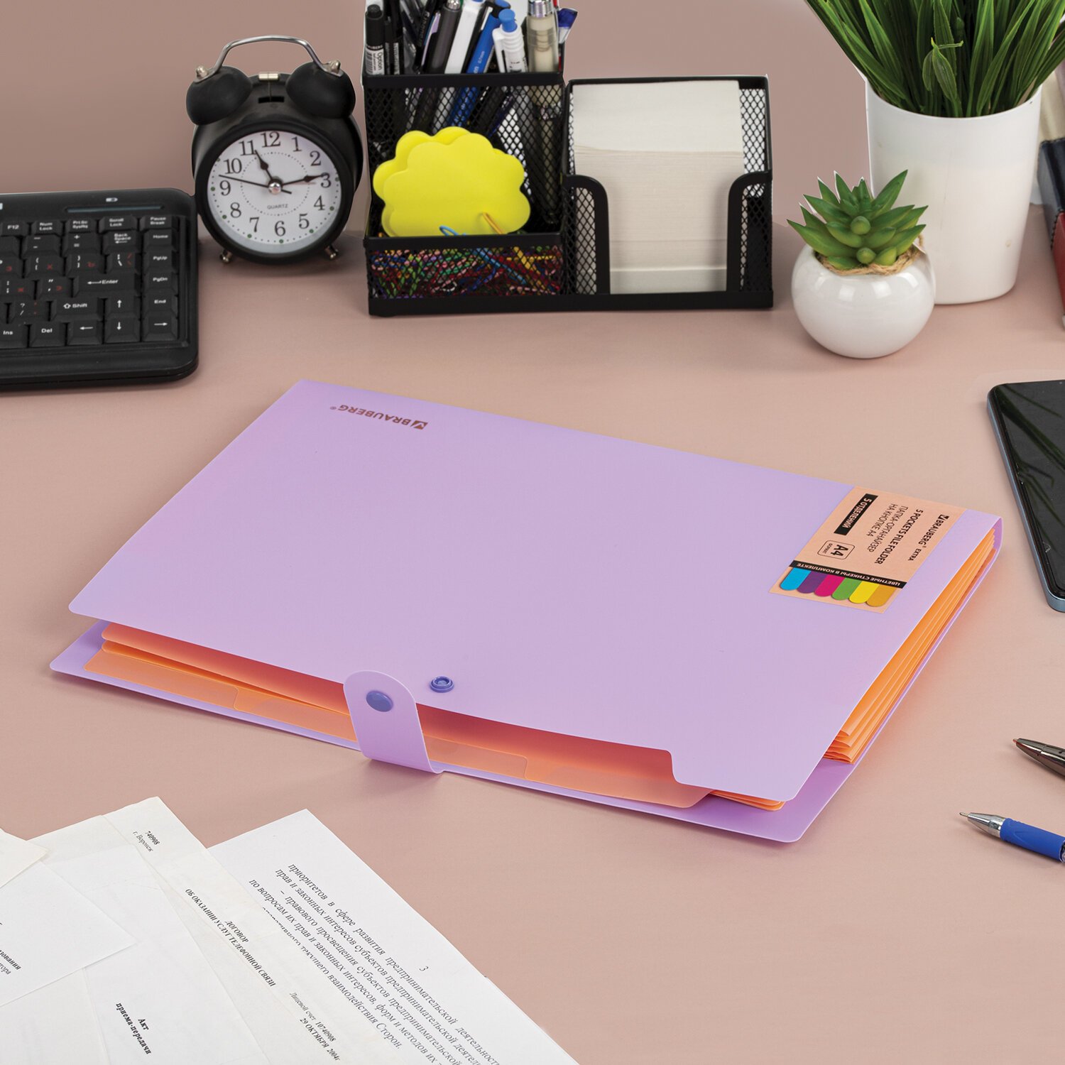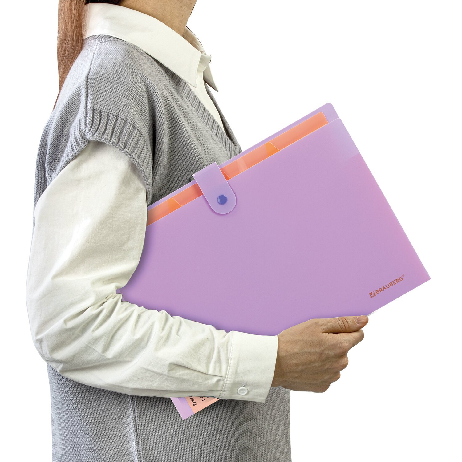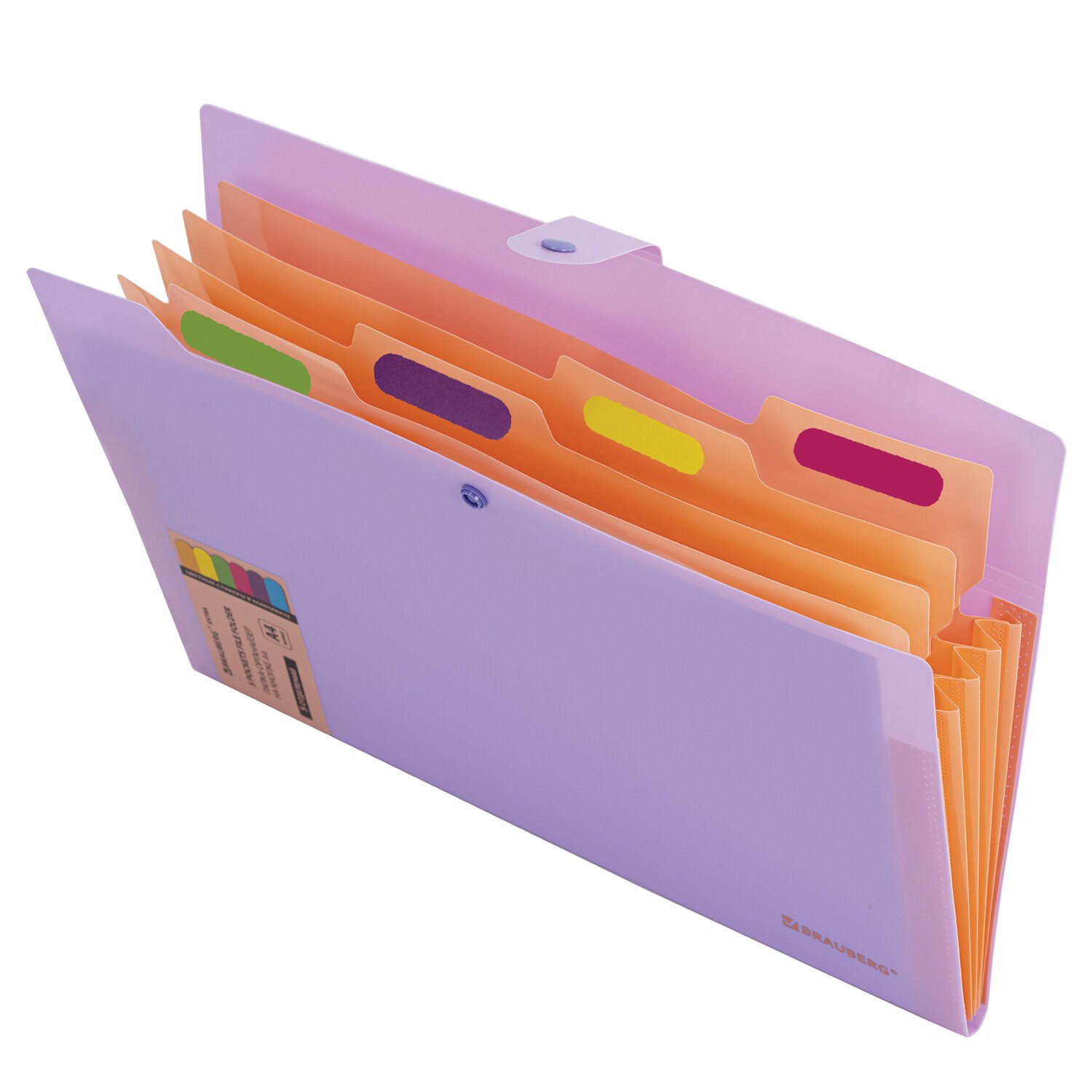 Папка-органайзер на кнопке 5 отделений, BRAUBERG "Extra", А4, лиловая с персиковым, 274098