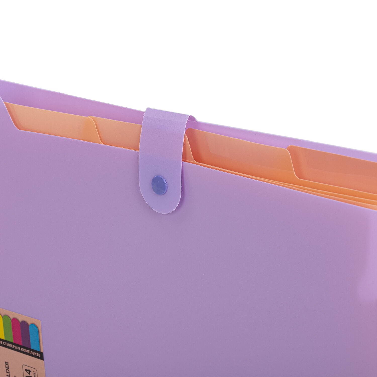 Папка-органайзер конверт на кнопке 6 отделений, BRAUBERG "Extra", A4, лиловая с персиковым, 274101