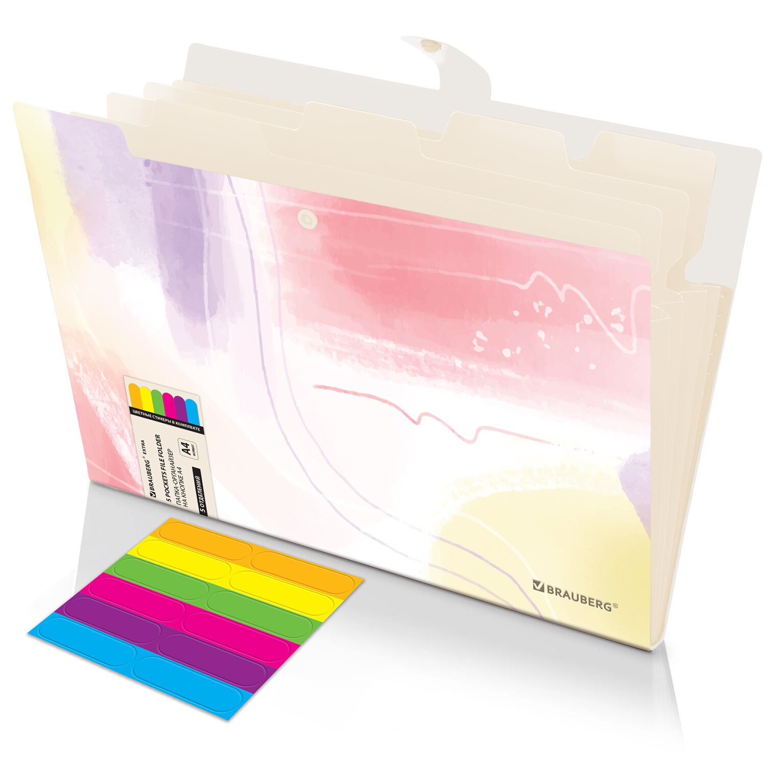 Папка-органайзер на кнопке 5 отделений, BRAUBERG "Extra", А4, пастельные узоры, 274100