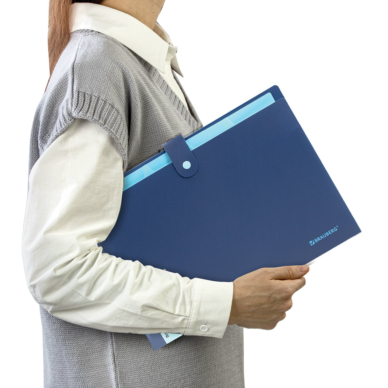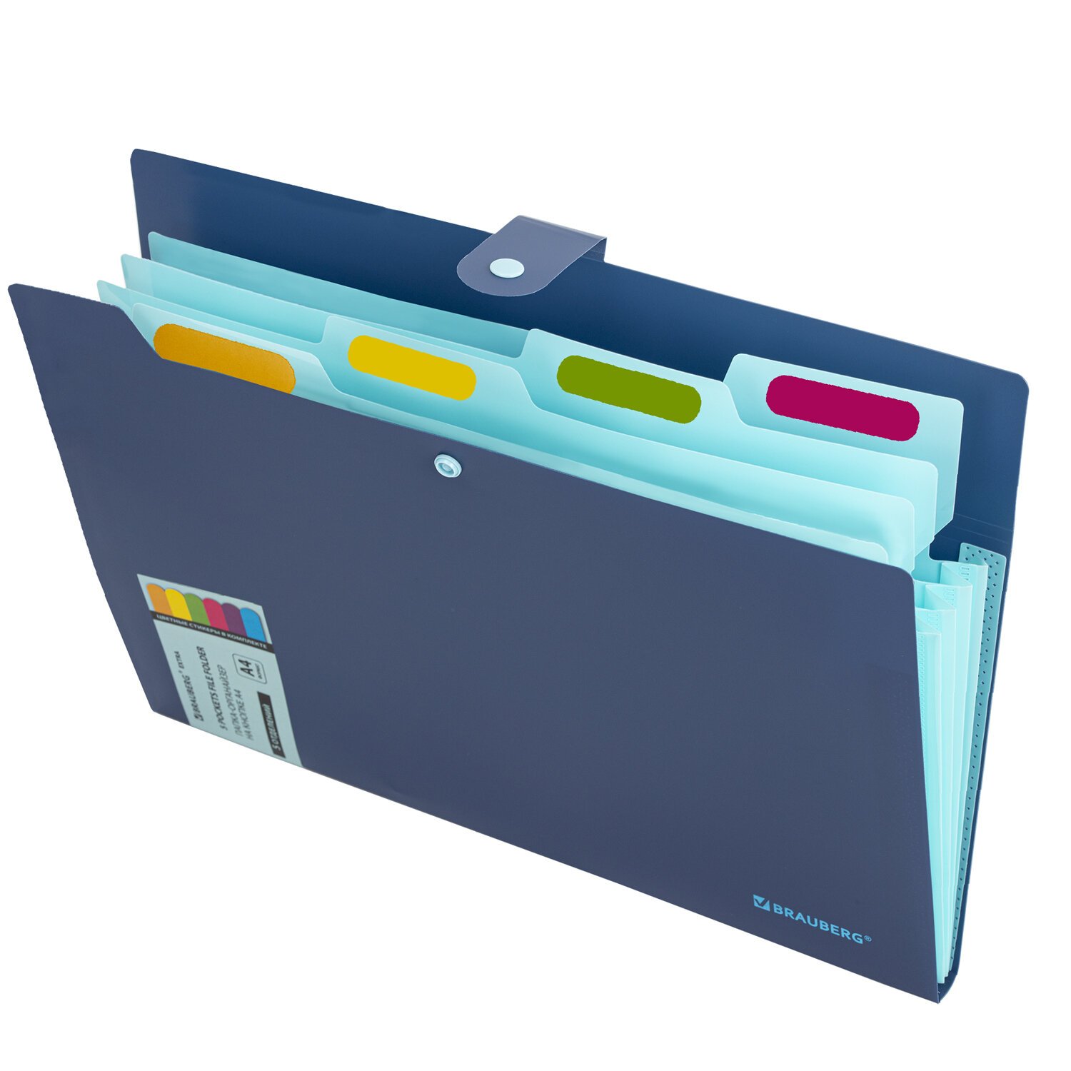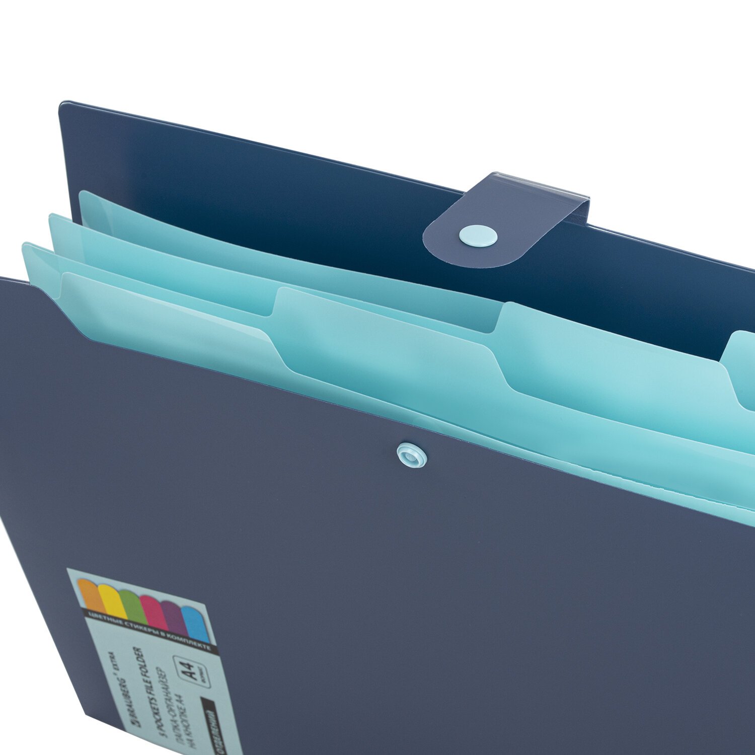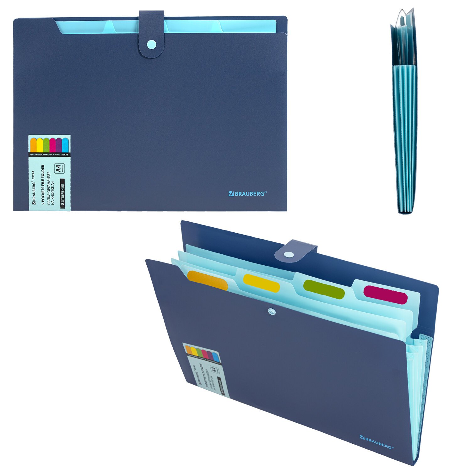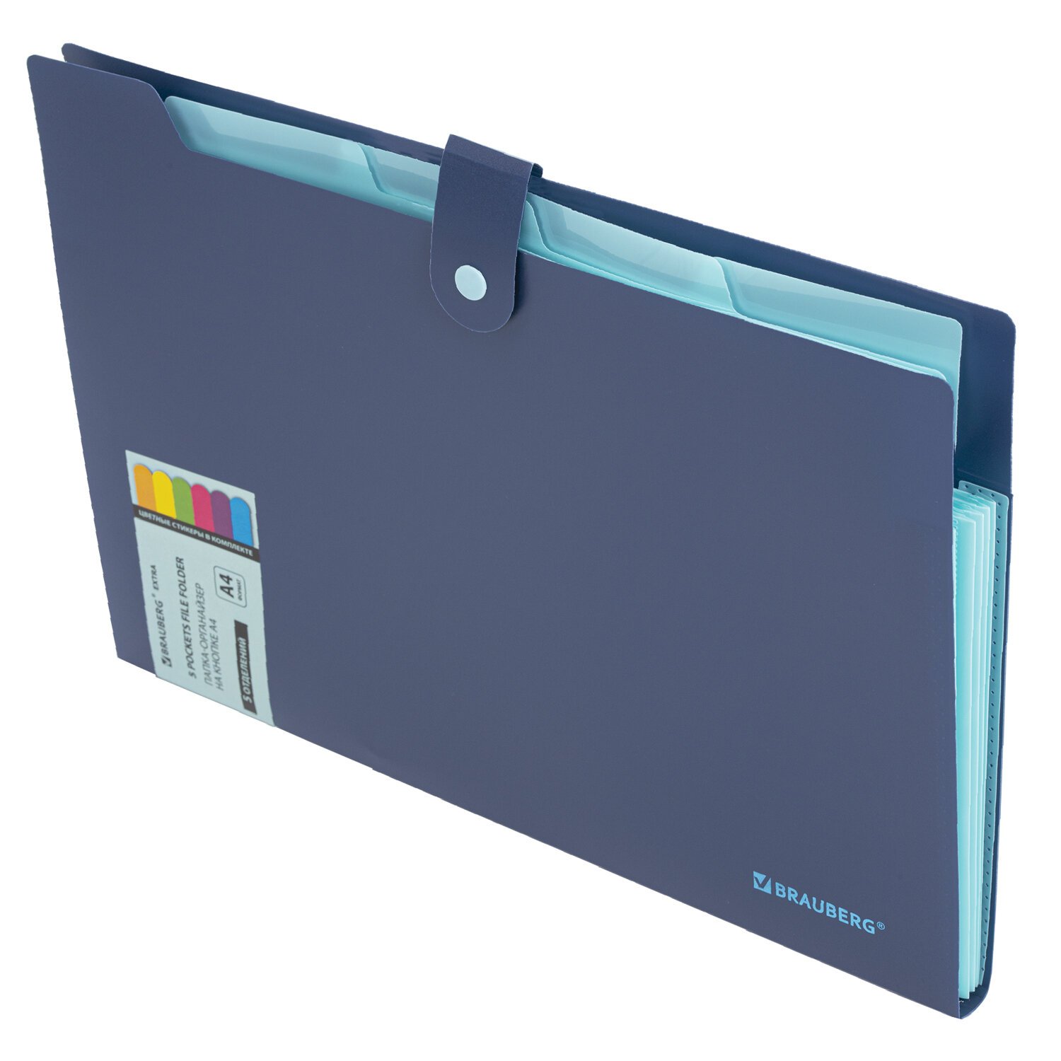 Папка-органайзер на кнопке 5 отделений, BRAUBERG "Extra", А4, синяя с голубым, 274096