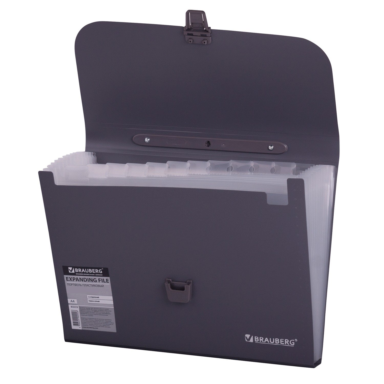 Папка-портфель пластиковая BRAUBERG А4 (327х254х30 мм), 13 отделений, серая, 221438