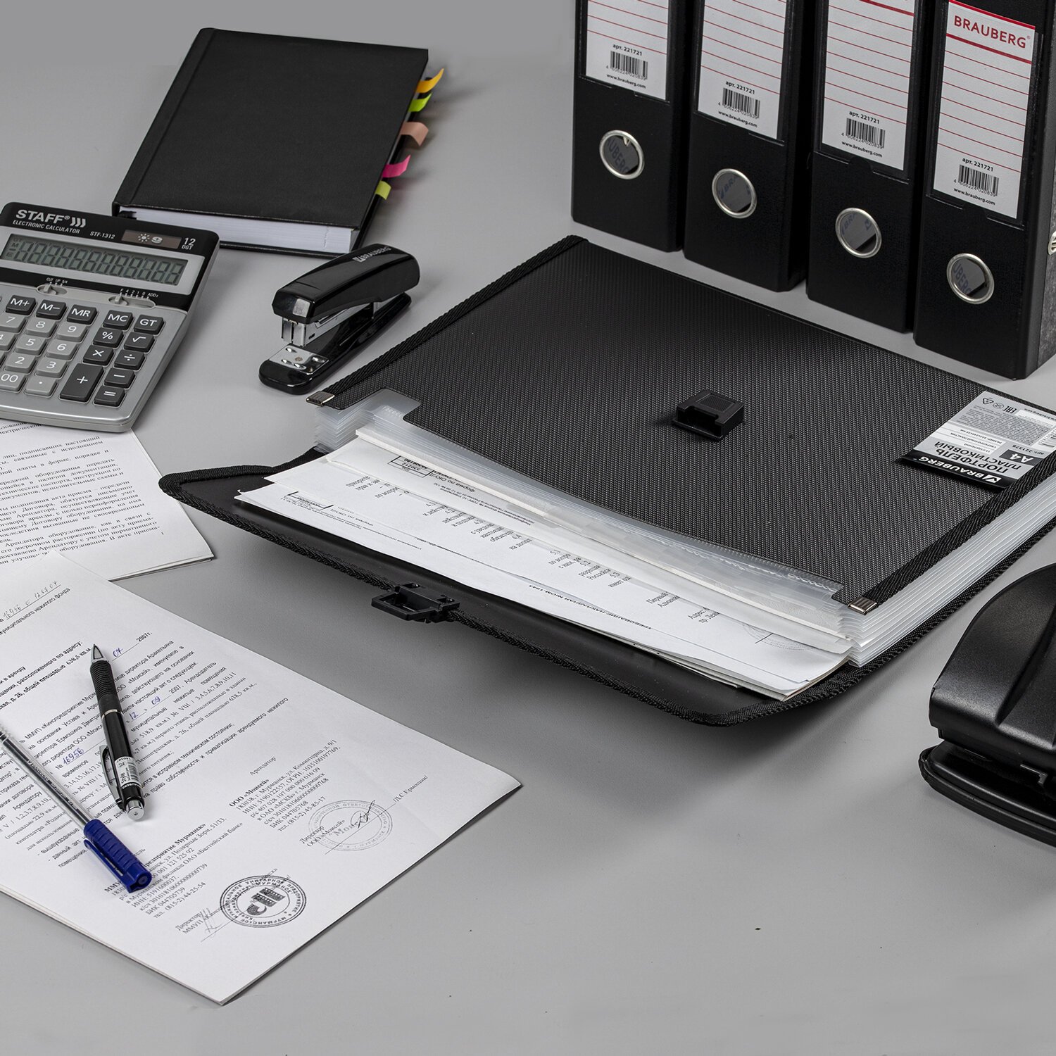 Папка-портфель пластиковая BRAUBERG А4 (332х245х35 мм), 13 отделений, черная, 221378