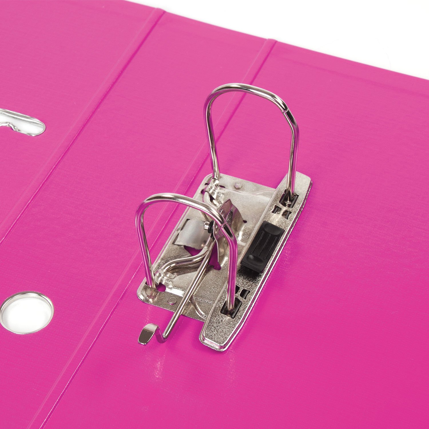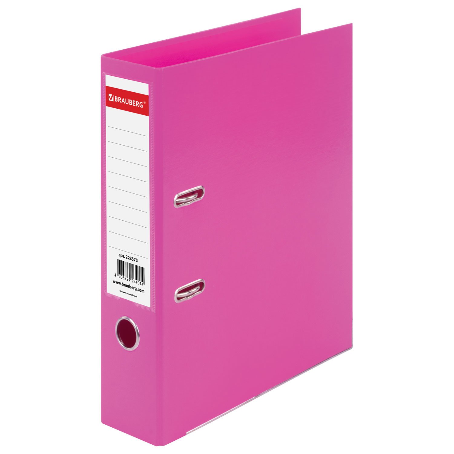 Папка-регистратор BRAUBERG "EXTRA" в формате А4 вертикальной ориентации - классический вариант хранения документов. Чем толще в папке корешок, тем больше листов можно расположить: ширина корешка в 75 мм позволяет разместить до 500 листов. Изготовлена из плотного картона, ламинированного с двух сторон цветной яркой пленкой из полипропилена, который не имеет резкого запаха, более долговечный и морозоустойчивый. Благодаря такому плотному покрытию допустима влажная уборка изделия. Нижние края папки защищены металлическим уголком, что позволяет служить в 2 раза дольше. Прорези для колец на внешней крышке позволяет оставаться папке закрытой даже при большом количестве бумаг. Яркий розовый цвет папки-регистратора серии "EXTRA" - смелое решение, чтобы разбавить серые рабочие будни.