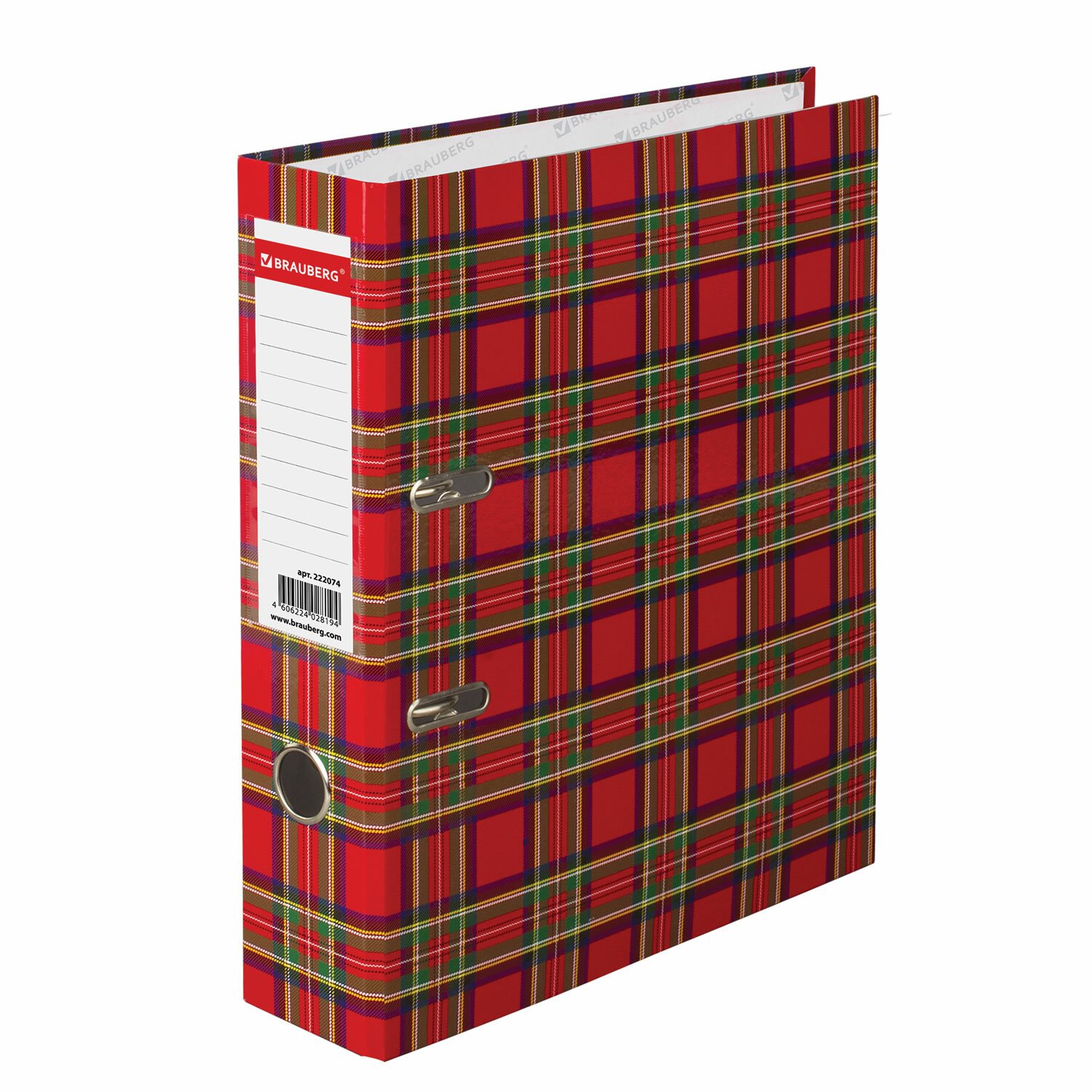Папка-регистратор BRAUBERG, ламинированная, 75 мм, шотландка, 222074