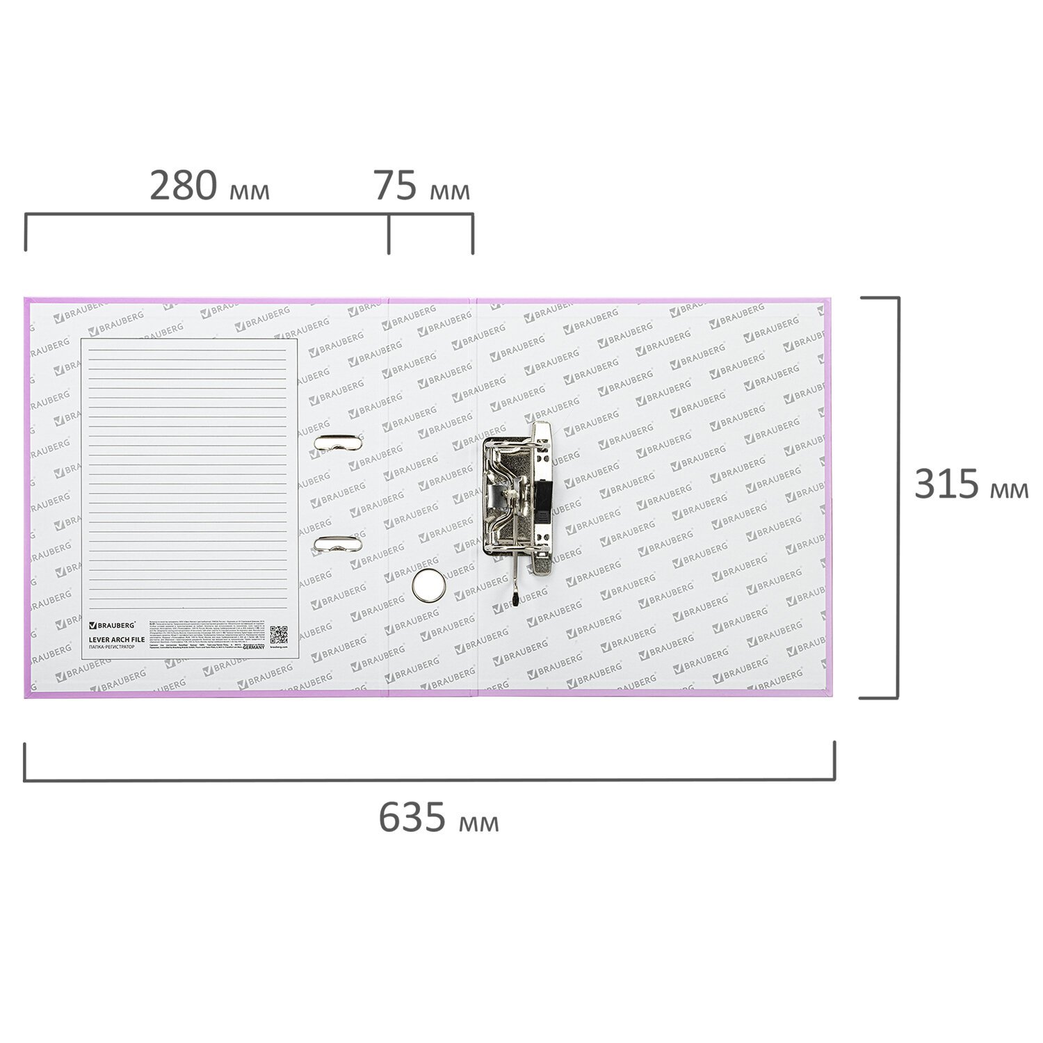 Папка формата А4 с вертикальной ориентацией изготовлена из высококачественного износоустойчивого картона с бумажным покрытием лилового цвета и матовой ламинацией. Ширина корешка в 75 мм позволяет разместить до 500 листов. Прорези для колец на внешней крышке позволяют оставаться папке закрытой даже при большом количестве бумаг, а надежный арочный механизм легко справляется с ежедневными нагрузками. Корешок папки снабжен этикеткой для маркировки содержимого, что позволяет структурировать информацию.