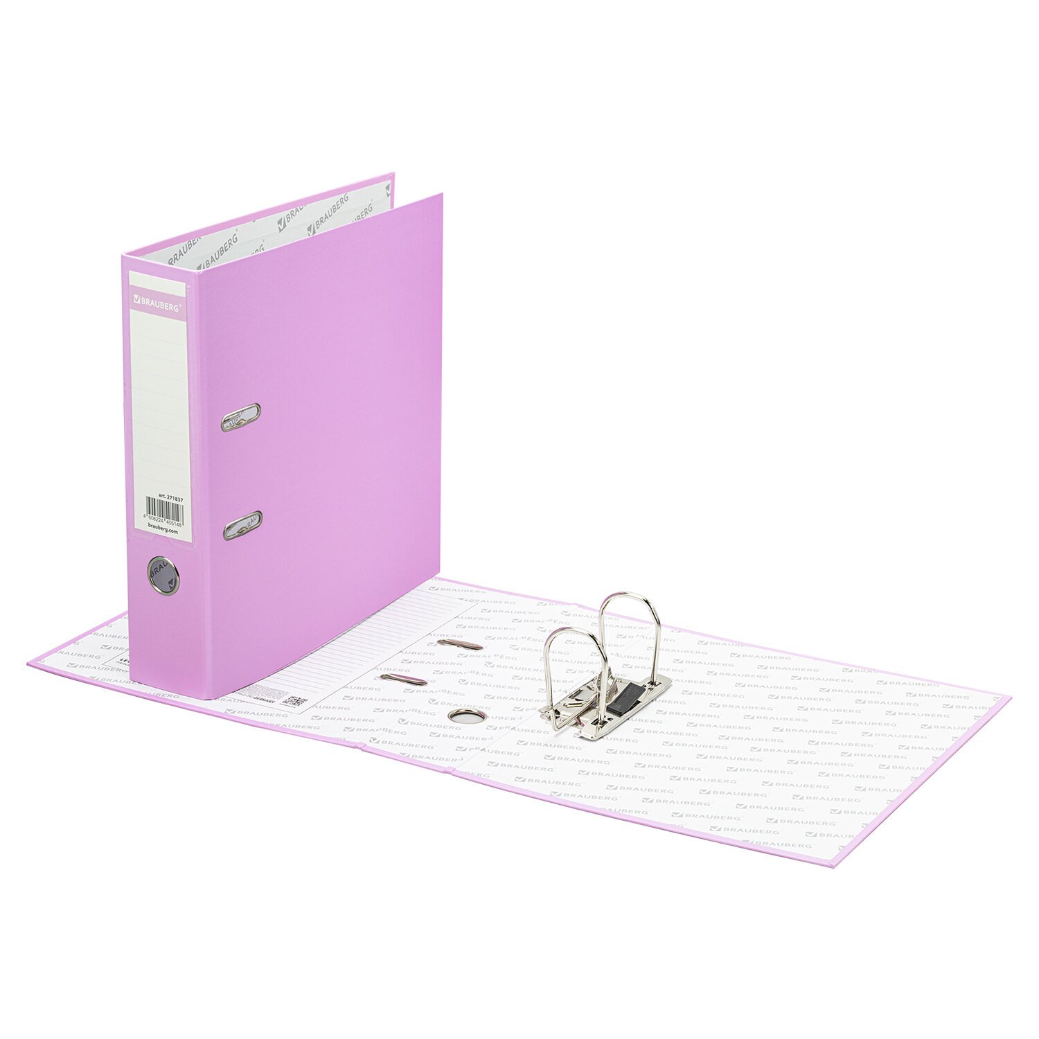 Папка-регистратор BRAUBERG PASTEL ламинированная, 75 мм, цвет лиловый, 271837