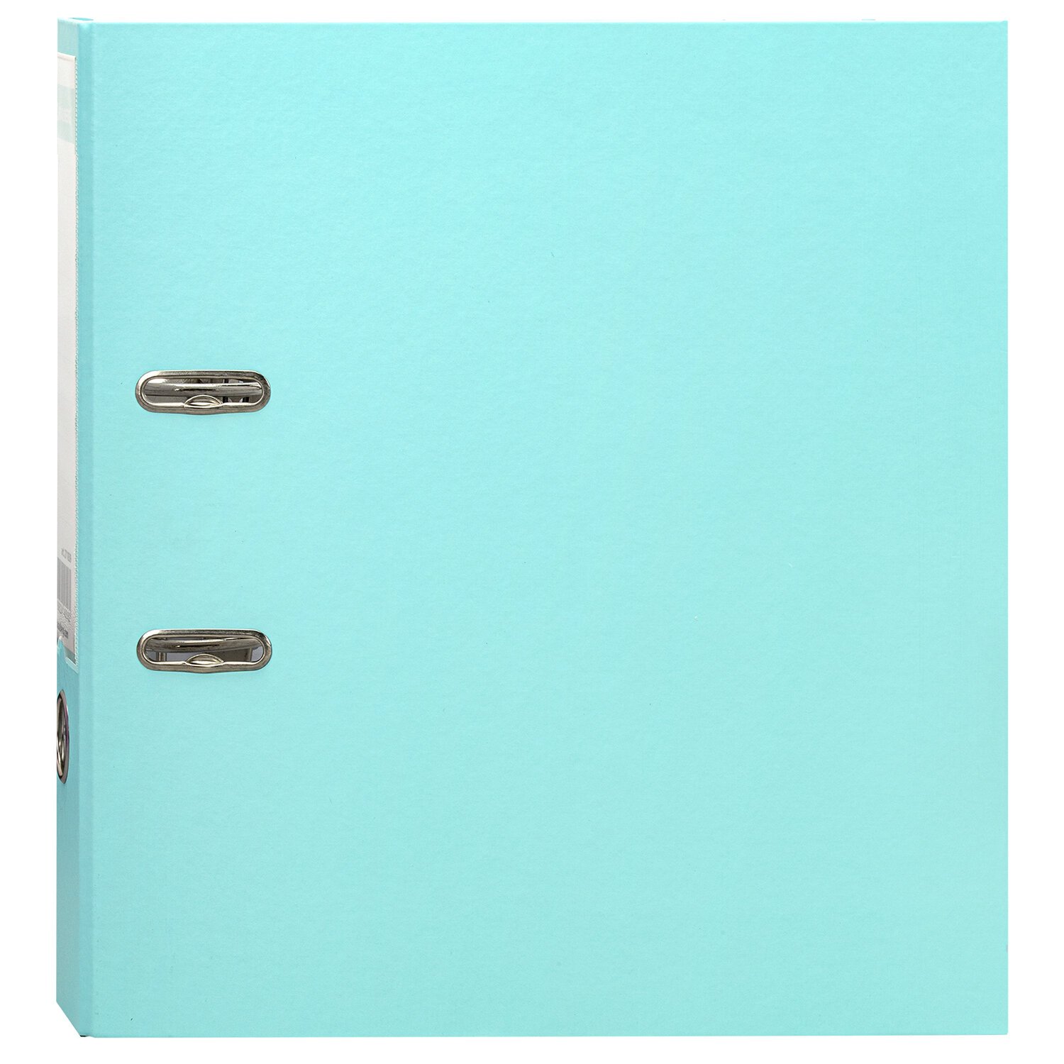Папка формата А4 с вертикальной ориентацией изготовлена из высококачественного износоустойчивого картона с бумажным покрытием мятного цвета и матовой ламинацией. Ширина корешка в 75 мм позволяет разместить до 500 листов. Прорези для колец на внешней крышке позволяют оставаться папке закрытой даже при большом количестве бумаг, а надежный арочный механизм легко справляется с ежедневными нагрузками. Корешок папки снабжен этикеткой для маркировки содержимого, что позволяет структурировать информацию.