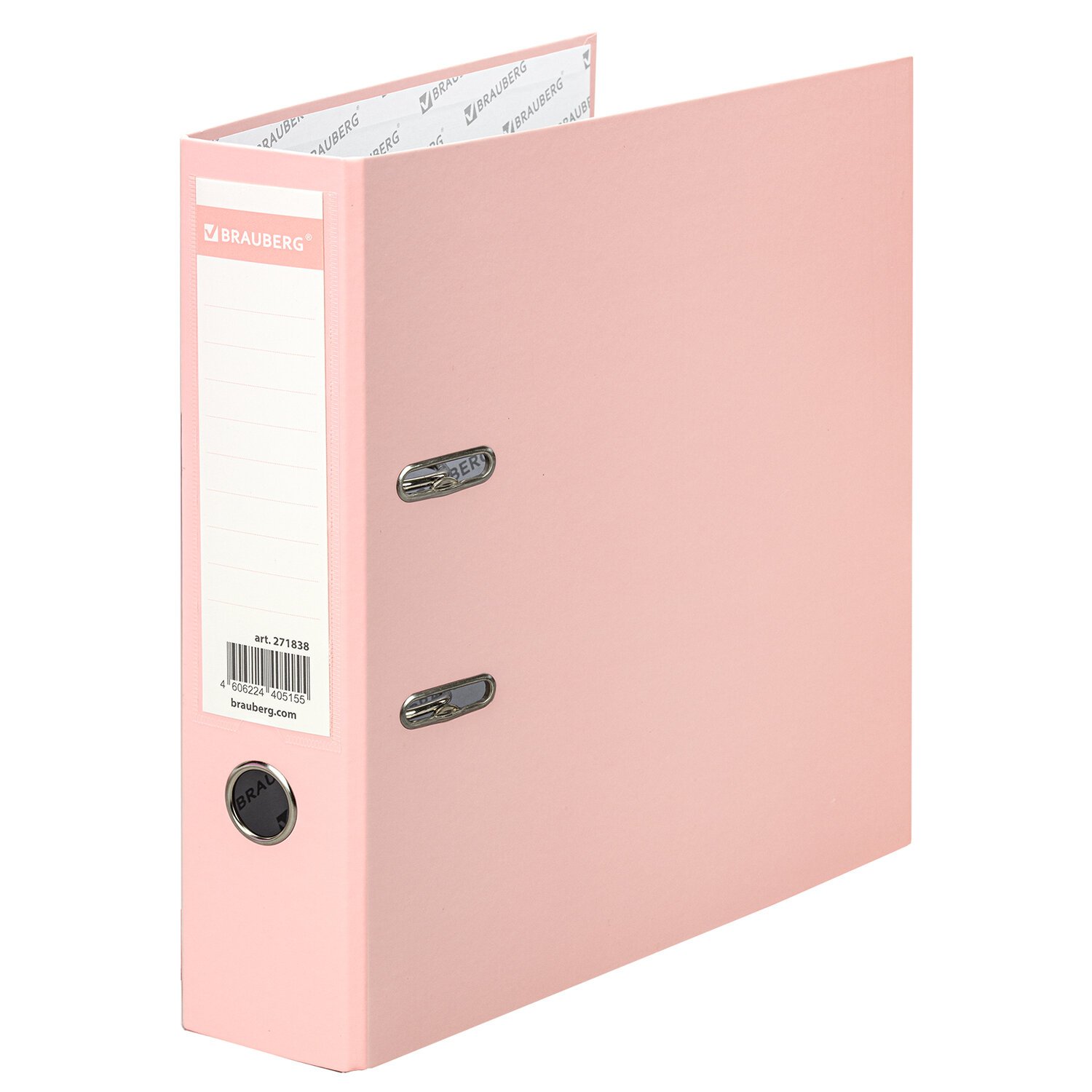 Папка-регистратор BRAUBERG PASTEL ламинированная, 75 мм, цвет персиковый, 271838