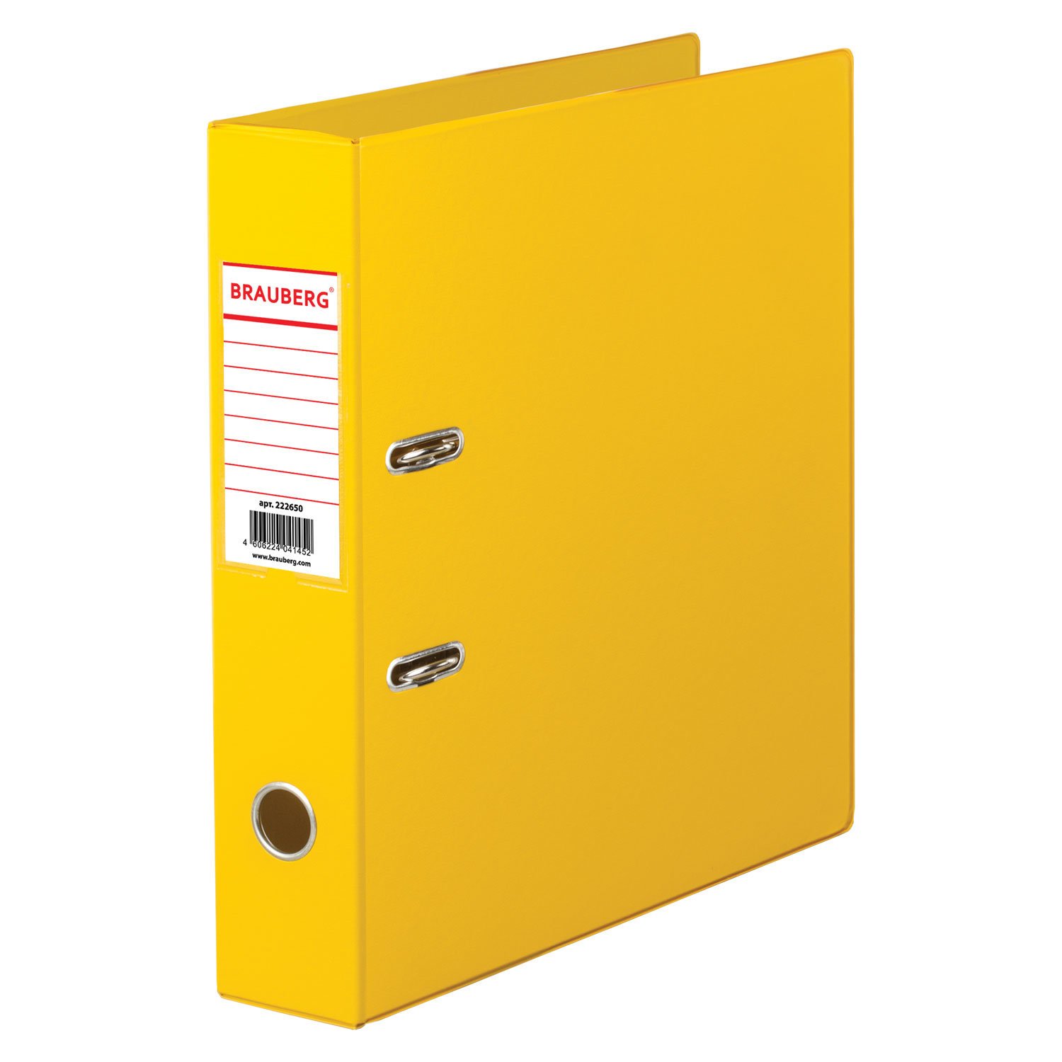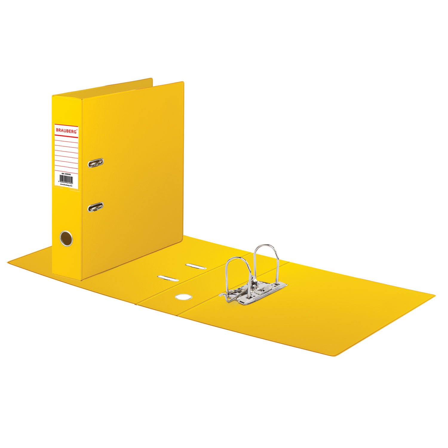 Папка-регистратор BRAUBERG с двухсторонним покрытием из ПВХ, 70 мм, желтая, 222650