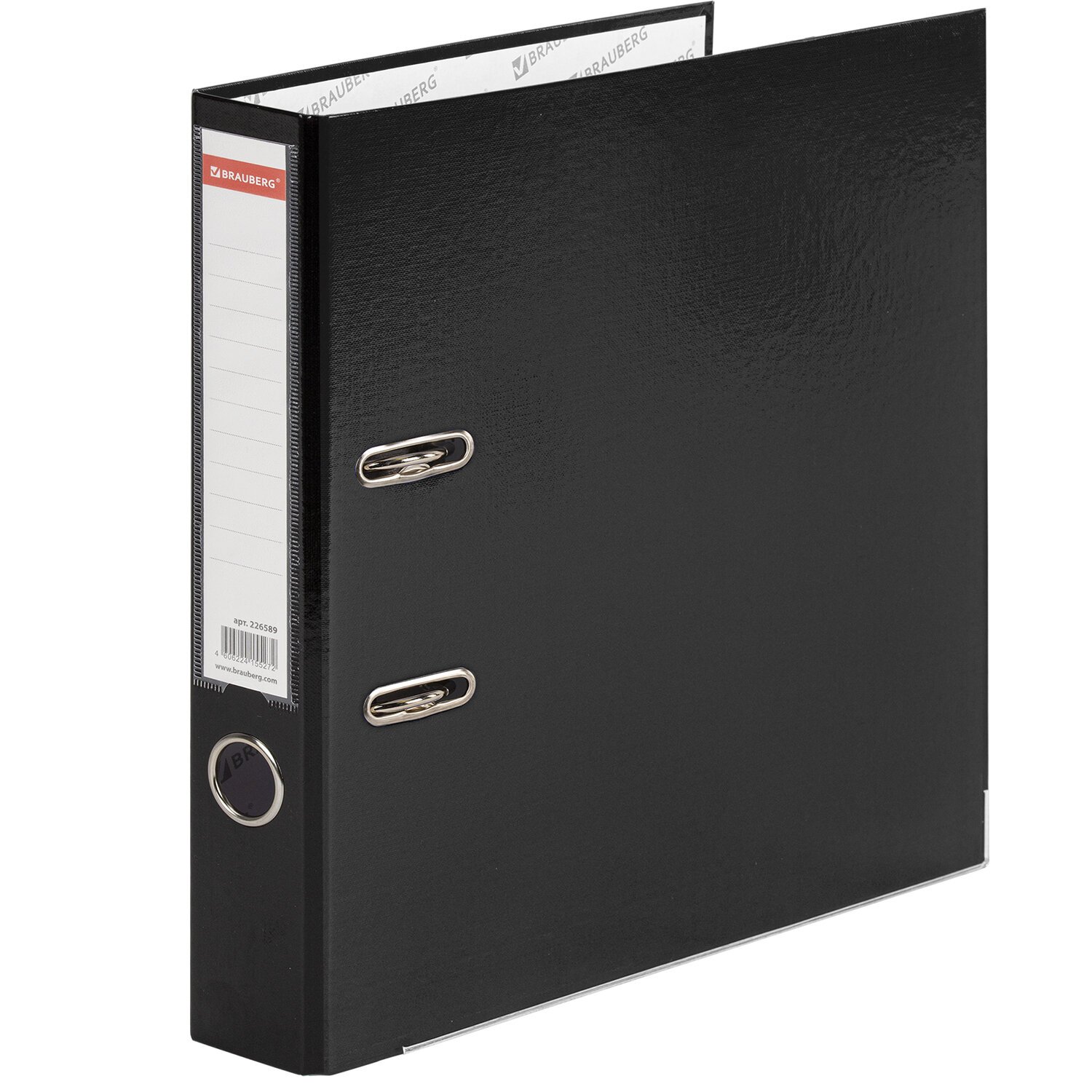 Папка-регистратор, покрытие пластик, 50 мм, ПРОЧНАЯ, с уголком, BRAUBERG, черная, 226589