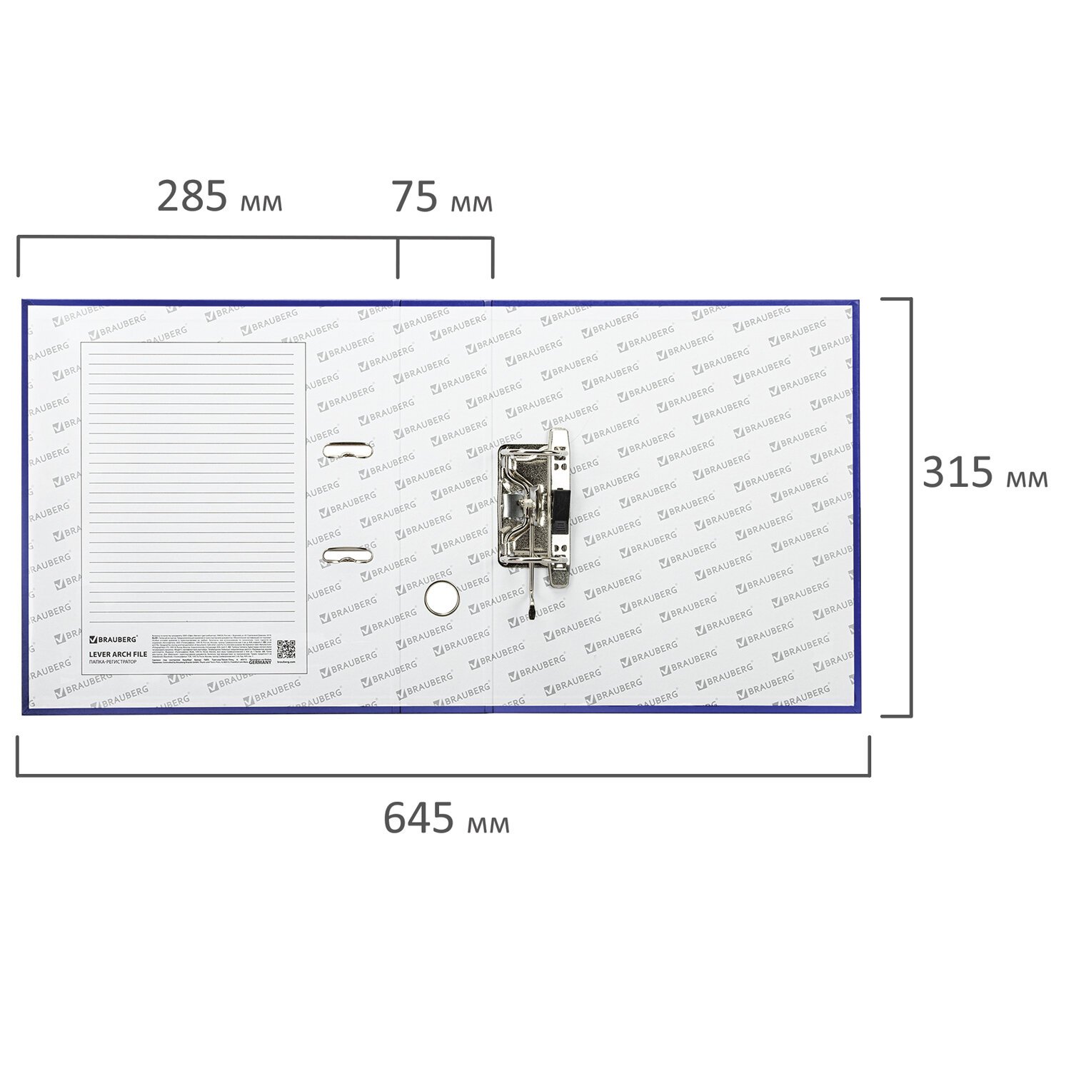 Папка формата А4 с вертикальной ориентацией изготовлена из плотного картона, ламинированного синей пленкой из полипропилена, который не имеет резкого запаха и отличается долговечностью и морозоустойчивостью. Благодаря такому плотному покрытию допустима влажная уборка изделия. Ширина корешка в 75 мм позволяет разместить до 500 листов.