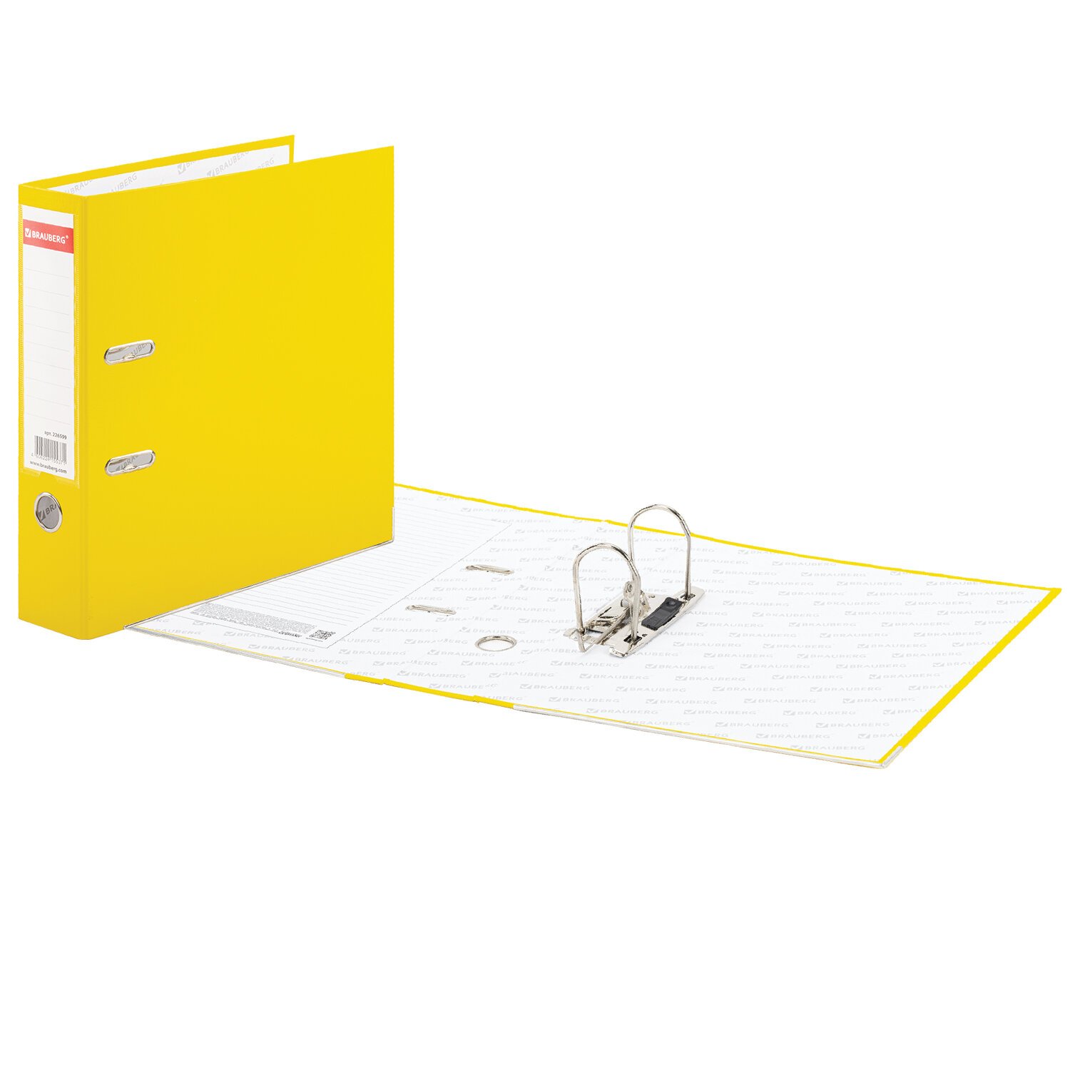 Папка-регистратор, покрытие пластик, 75 мм, ПРОЧНАЯ, с уголком, BRAUBERG, желтая, 226599