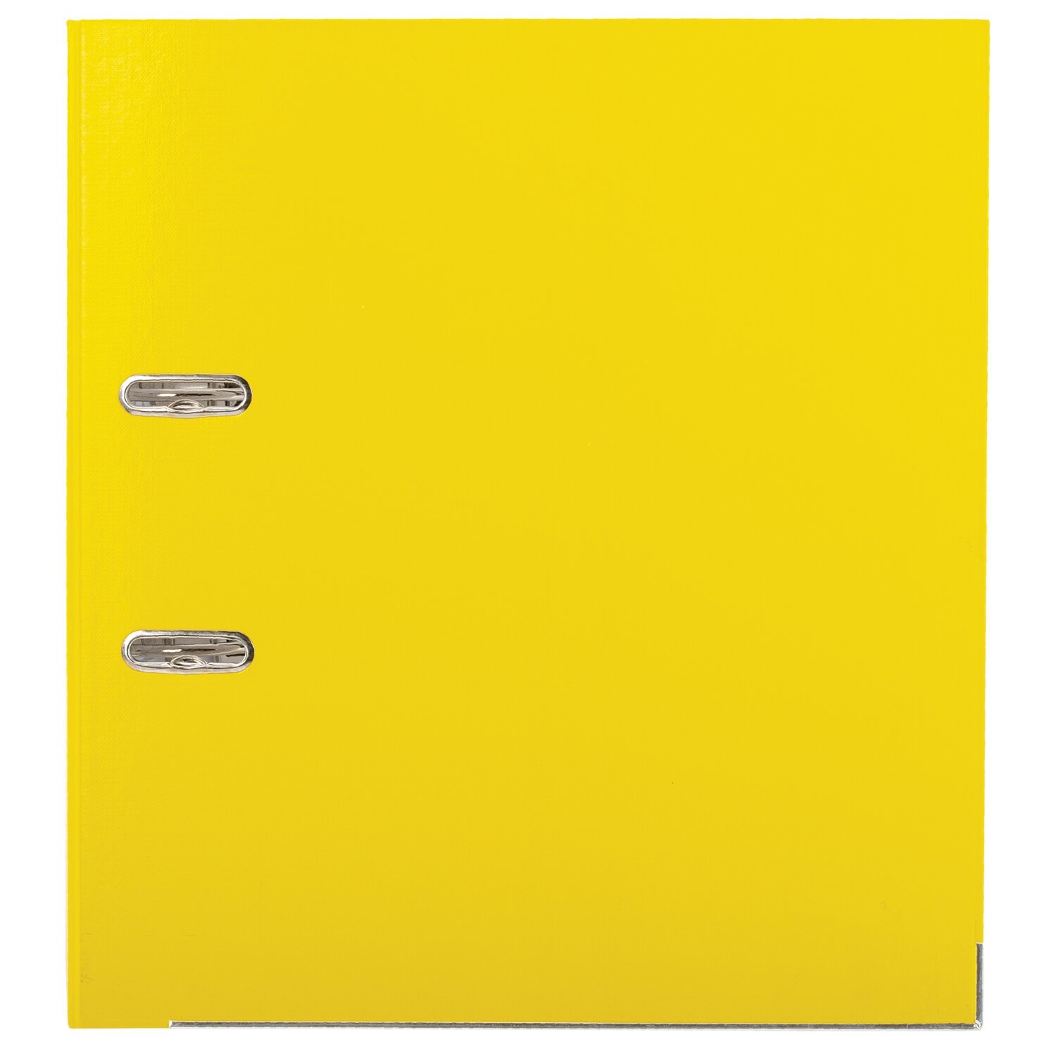 Папка формата А4 с вертикальной ориентацией изготовлена из плотного картона, ламинированного цветной яркой пленкой из полипропилена, который не имеет резкого запаха и отличается долговечностью и морозоустойчивостью. Благодаря такому плотному покрытию допустима влажная уборка изделия. Ширина корешка в 75 мм позволяет разместить до 500 листов. Нижние края папки защищены металлическими уголками, что увеличивает срок службы в 2 раза. Прорези для колец на внешней крышке позволяют оставаться папке закрытой даже при большом количестве бумаг, а надежный арочный механизм легко справляется с ежедневными нагрузками. Корешок снабжен этикеткой для маркировки содержимого, что позволяет структурировать информацию. Такая папка станет незаменимым помощником для работников с документацией, а яркий желтый цвет папки-регистратора выделит ее в ряду других.