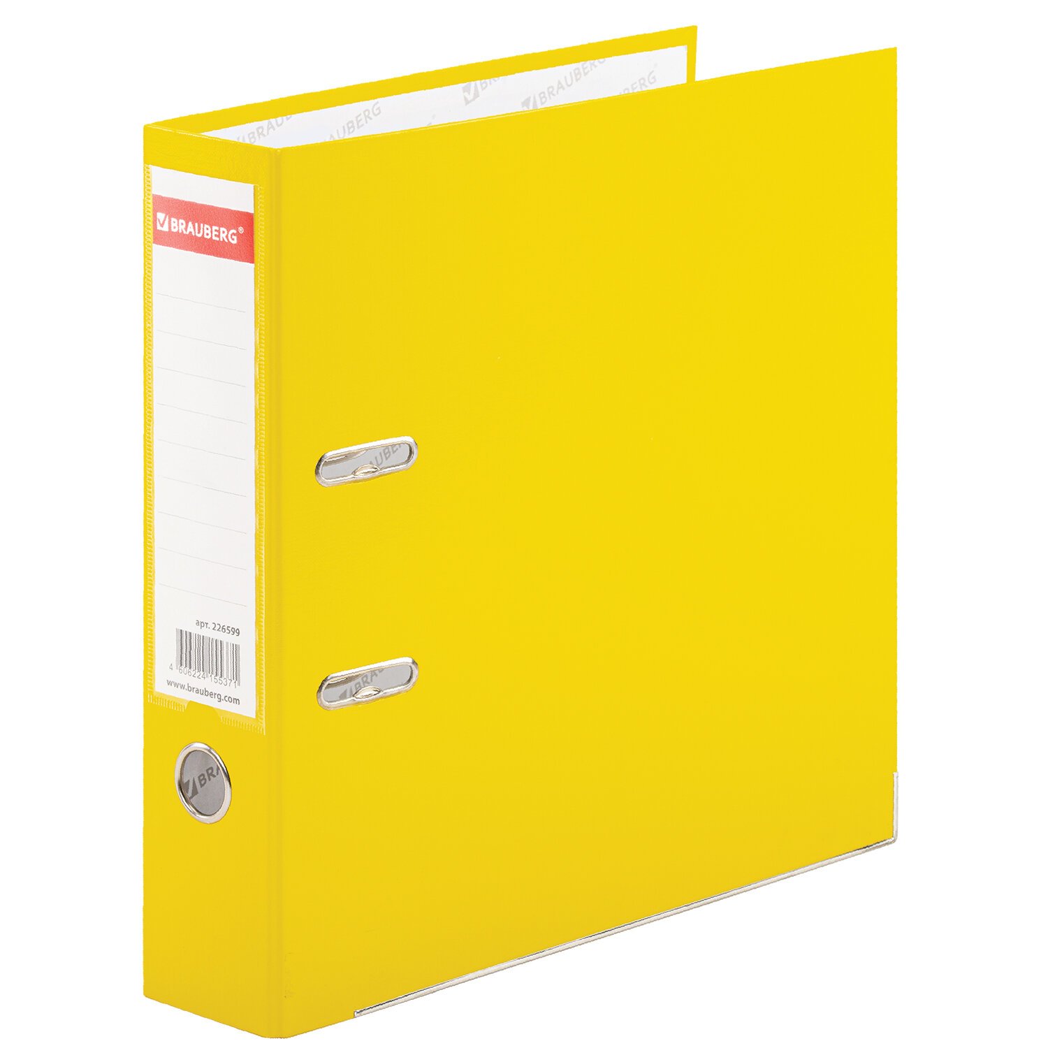 Папка-регистратор BRAUBERG "EXTRA", 75 мм, желтая, двустороннее покрытие пластик, металлический уголок, 228574