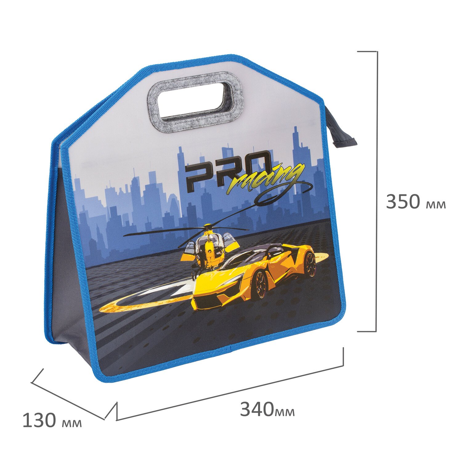 Папка с ручками ЮНЛАНДИЯ, 1 отделение, пластик, 35х34х13 см, молния сверху, "Proracing", 270352