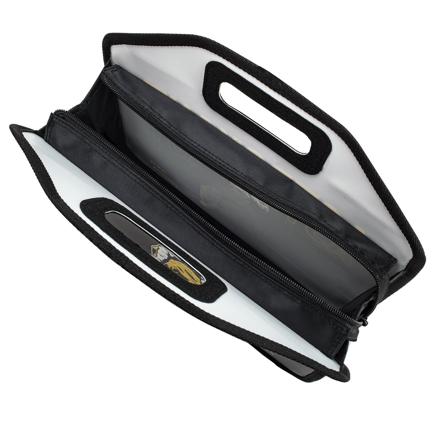 Практичная широкая папка-сумка на молнии защитит содержимое от замятий и повреждений. Яркая и четкая печать дизайна с двух сторон папки. Застегивается на молнию по верхнему краю. Двойные фетровые ручки способствуют комфортной переноске при большой нагрузке. Прорезиненный материал на дне и по бокам папки создает водонепроницаемый эффект. Широкий формат товара позволяет разместить большое количество канцелярских принадлежностей для творчества внутри, в том числе стакан-непроливайку и бумажные принадлежности формата А4. Размер – 34х30 см, ширина – 10 см.