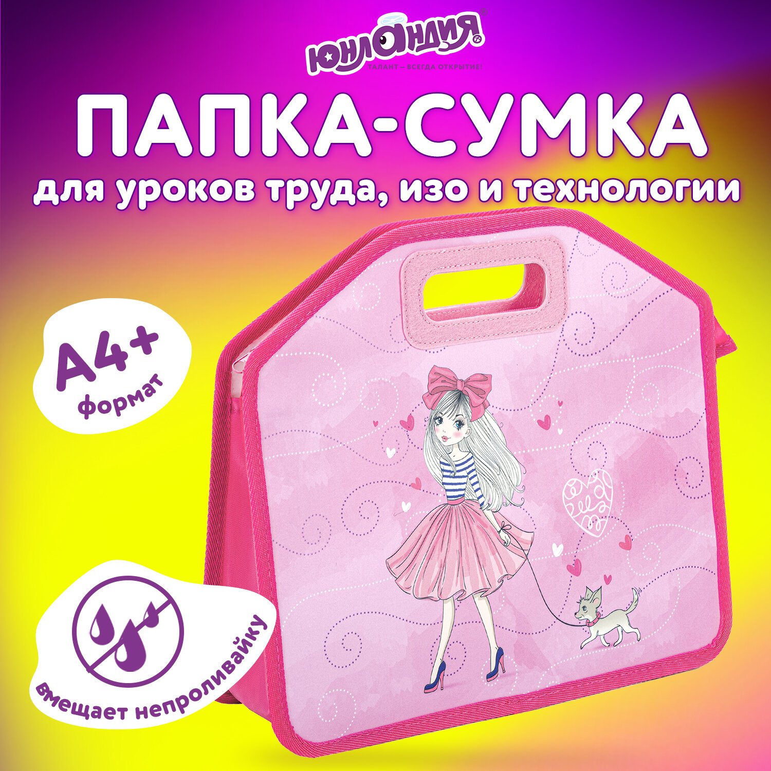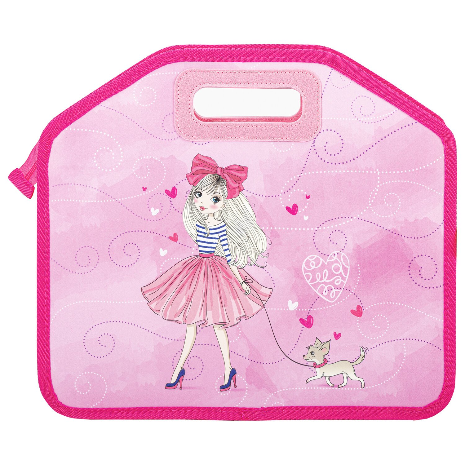 Папка-сумка ЮНЛАНДИЯ, 1 отделение, фетровые ручки, 34х30х11 см, "Girl and dog", 270997