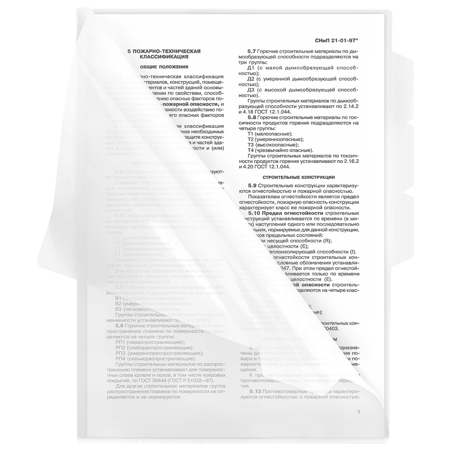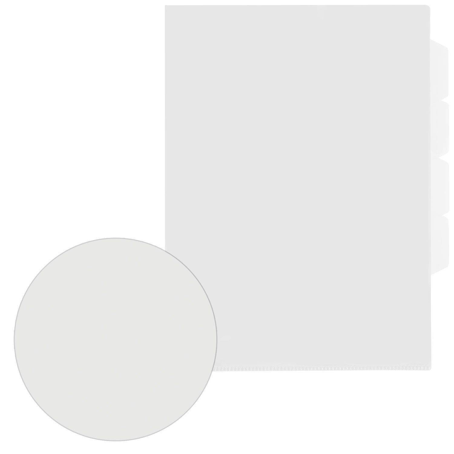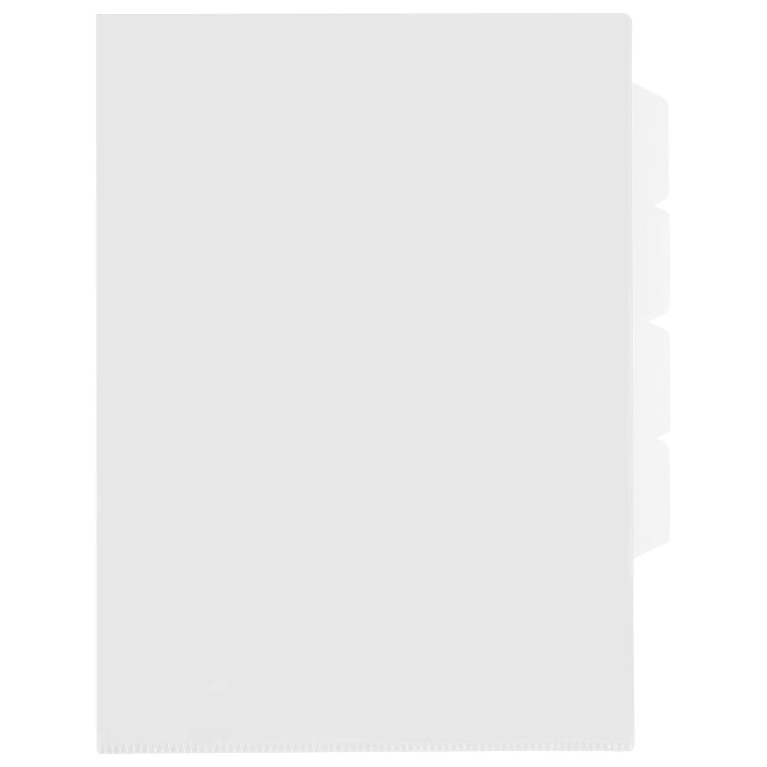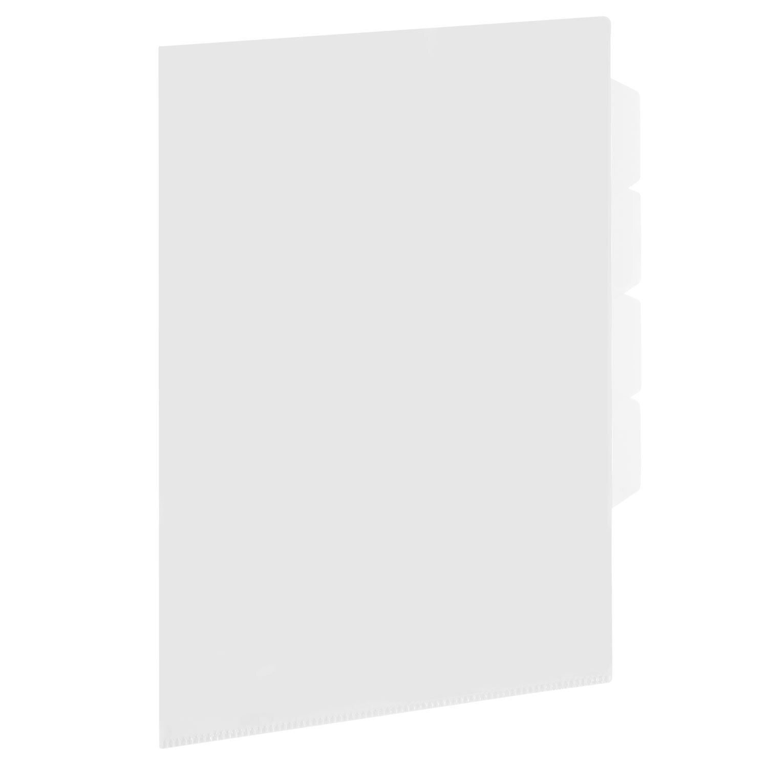 Папка формата А4 выполнена из высококачественного полипропилена плотностью 150 мкм. Она предотвращает смятие, загрязнение или намокание бумаг. Имеет 3 отделения, разделенных ярлычками. Прозрачный материал позволяет увидеть содержимое, не открывая папку.