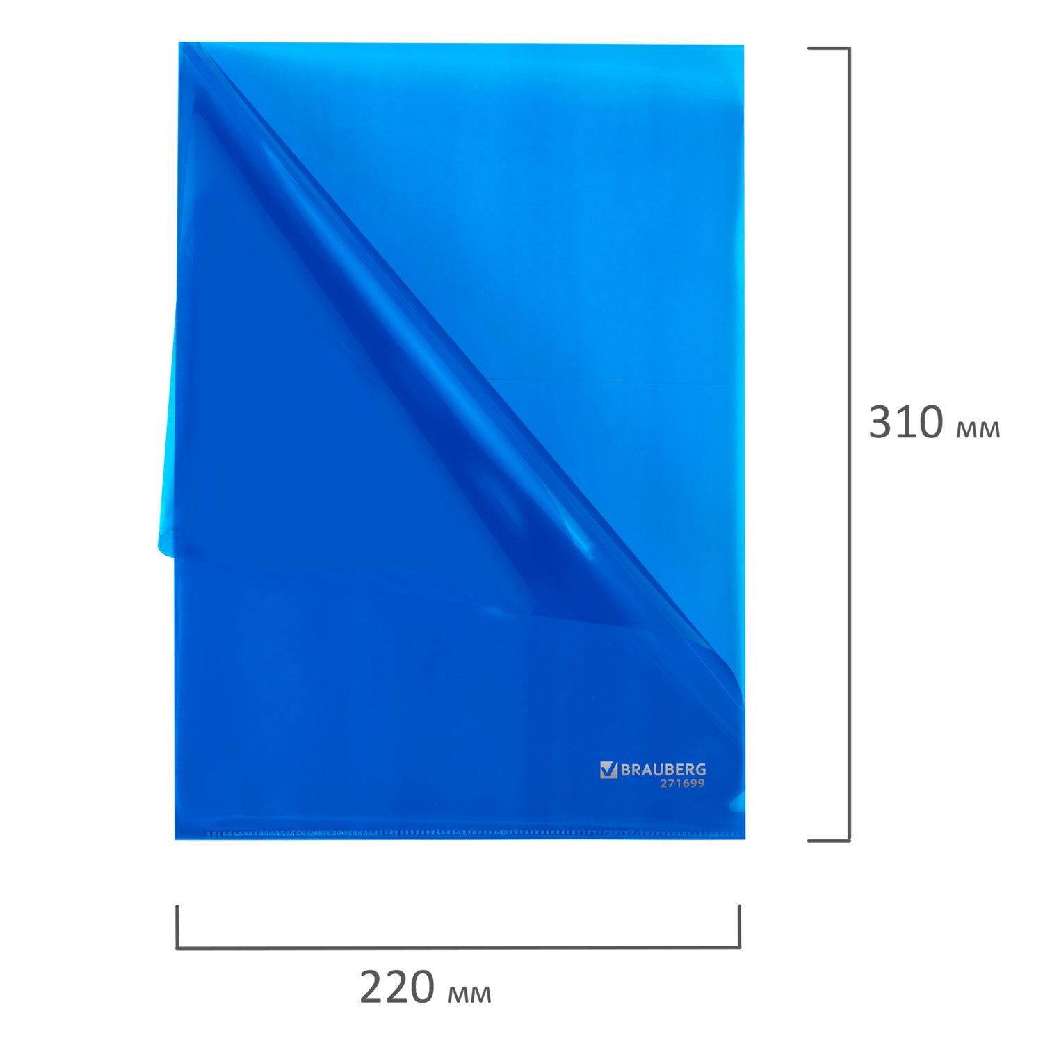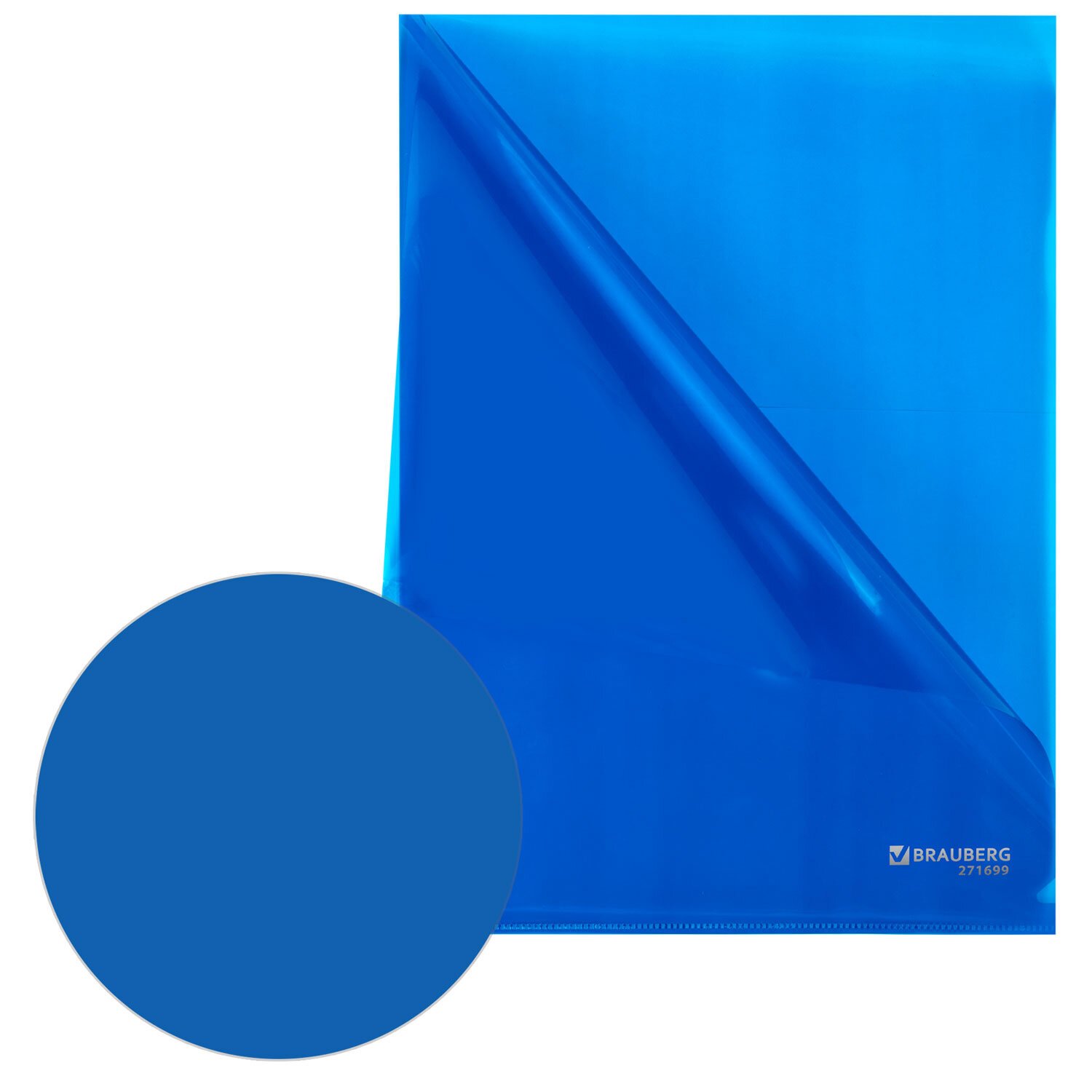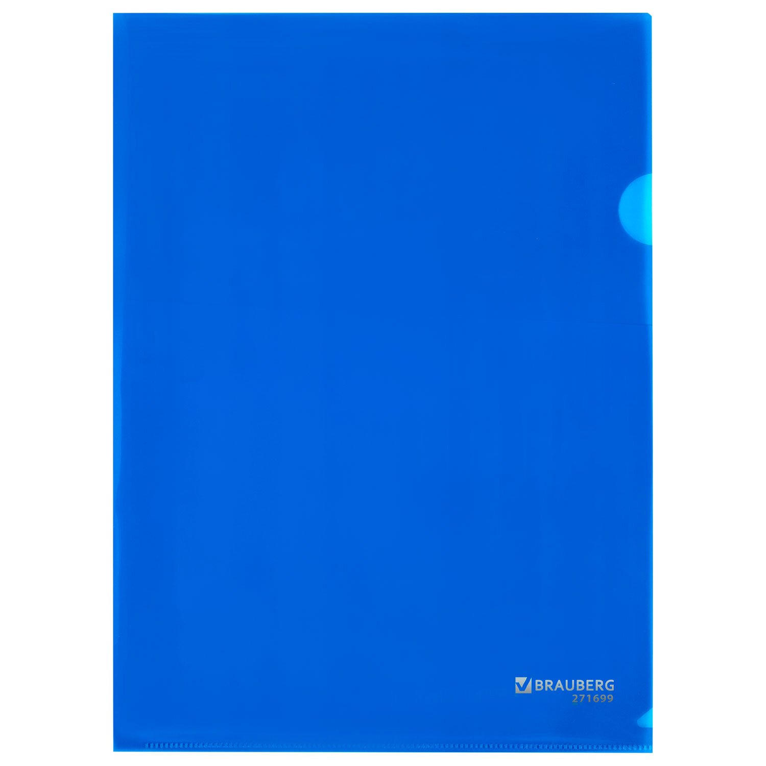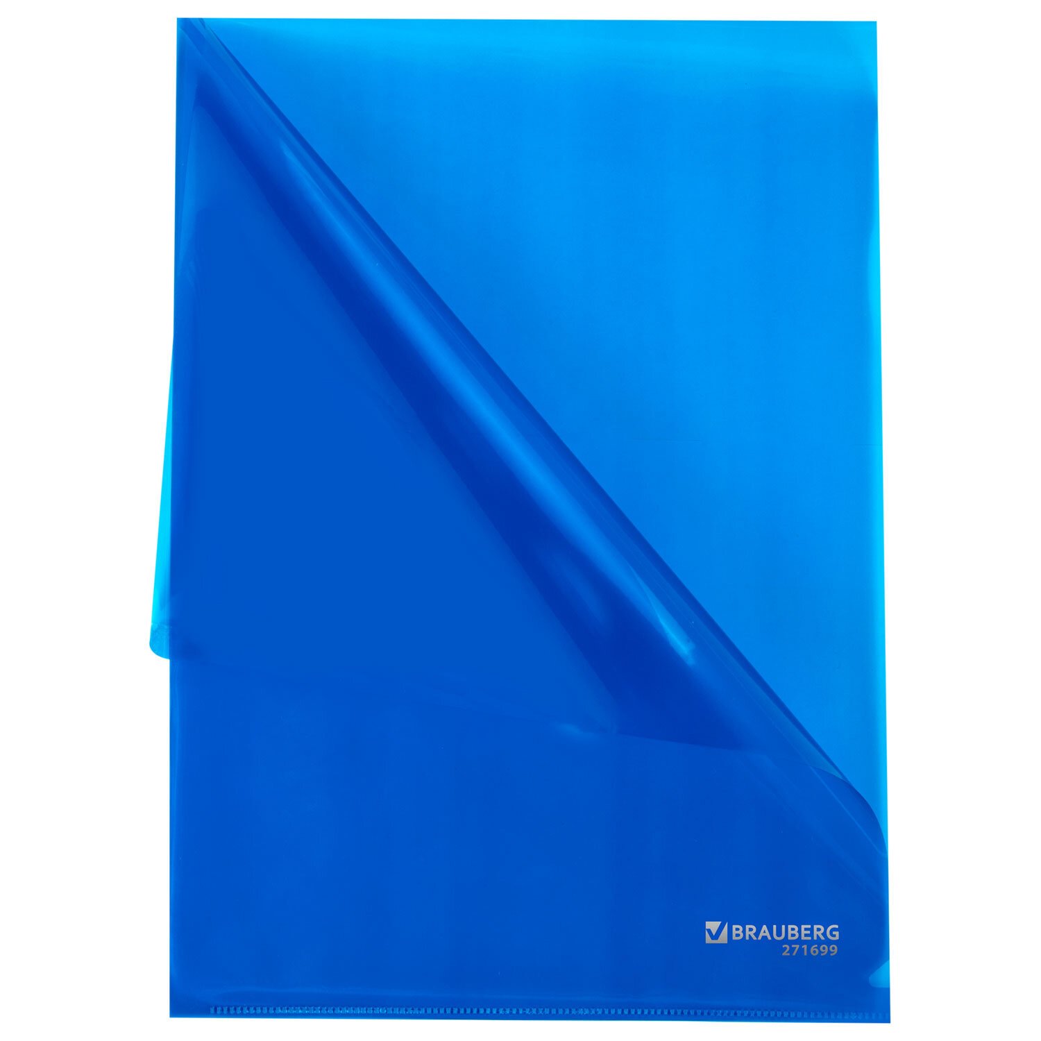 Папка-уголок прозрачная А4 BRAUBERG UNIVERSAL, синяя, 0,10 мм, 273045