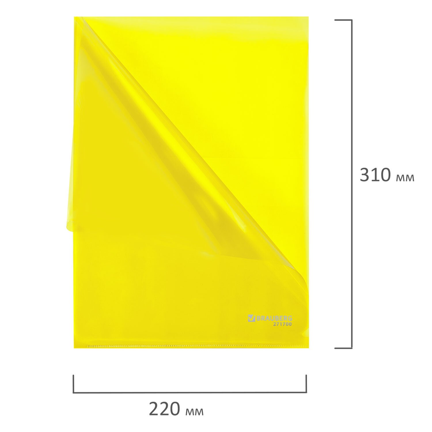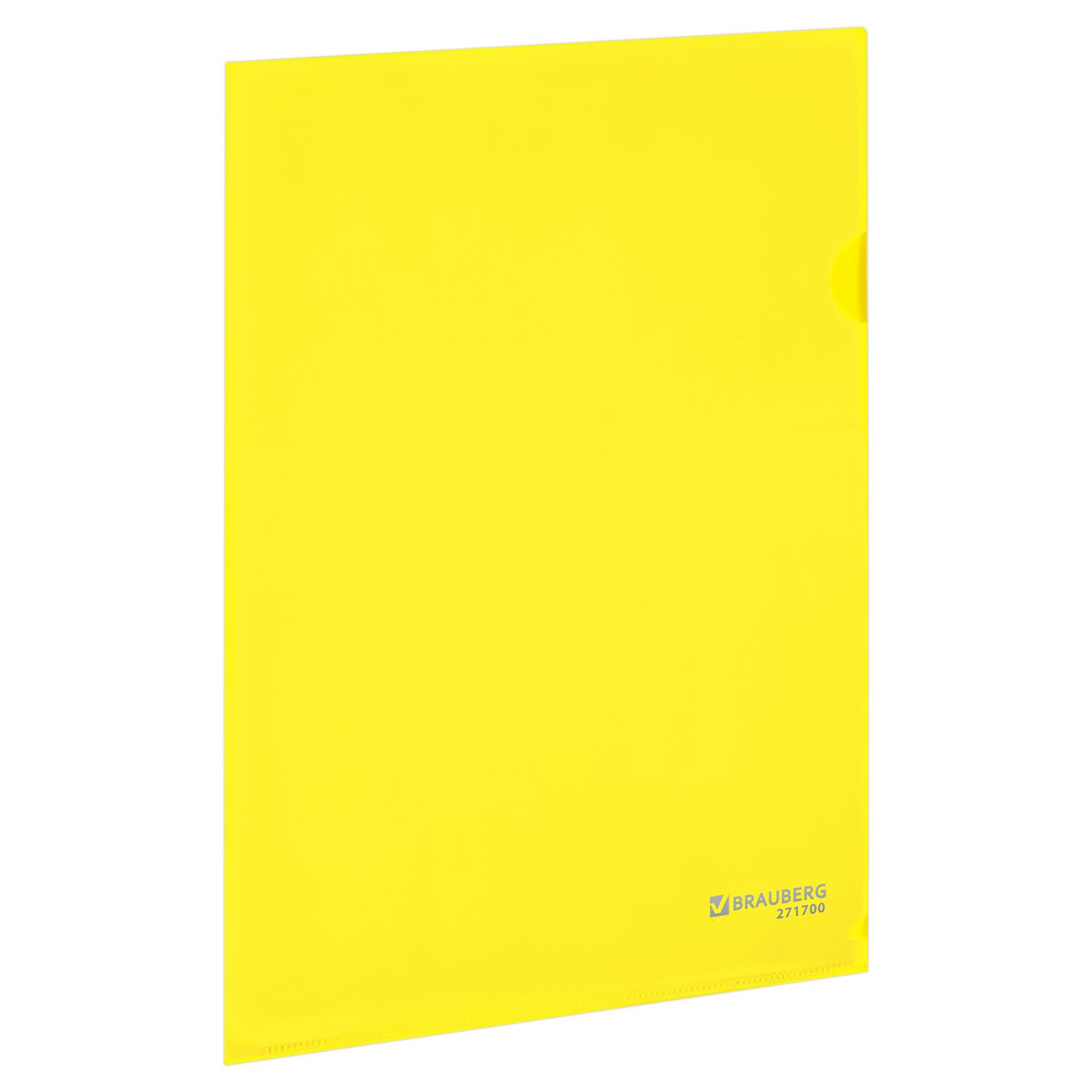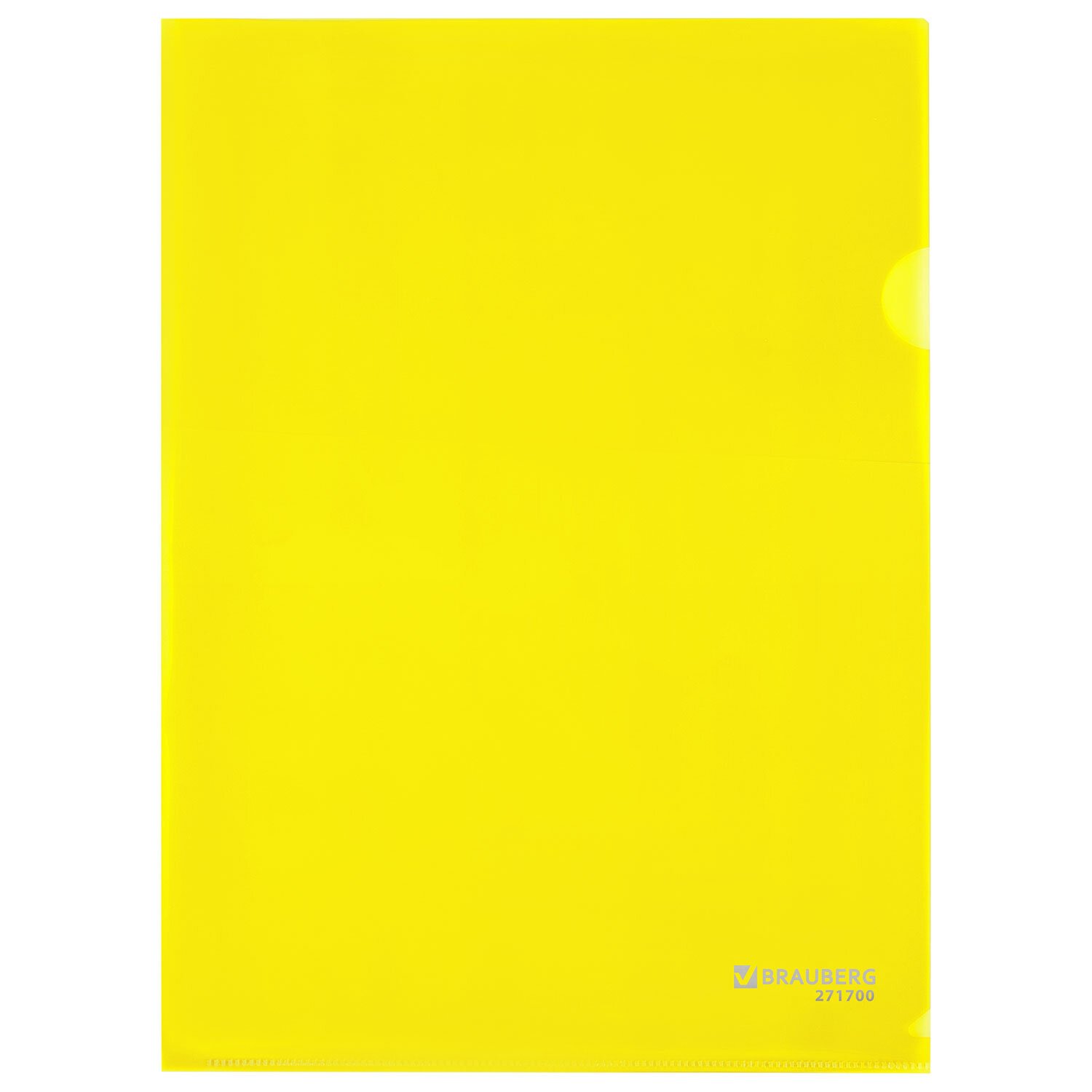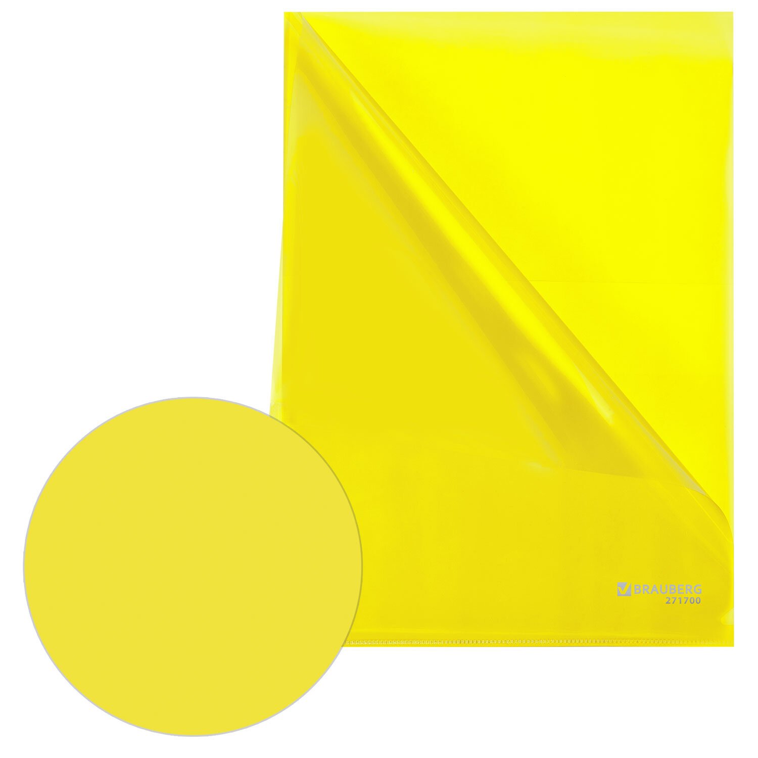 Папка-уголок А4 желтая 0,10 мм, BRAUBERG EXTRA, 271700